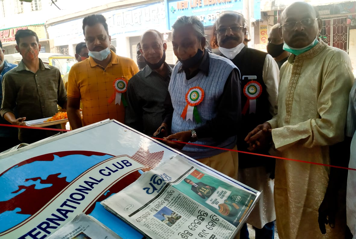 ପଥଚାରୀଙ୍କ ପାଇଁ କଟକ ମଙ୍ଗଳବାଗ ଇଣ୍ଟରନାଶନାଲ କ୍ଲୁବ ତରଫରୁ ପଥପ୍ରାନ୍ତରେ ଖବର କାଗଜ ପଠନ ଉଦଘାଟନ