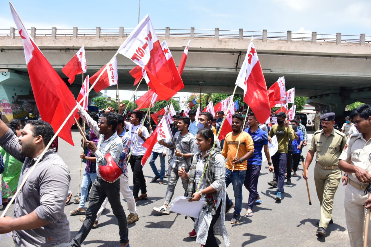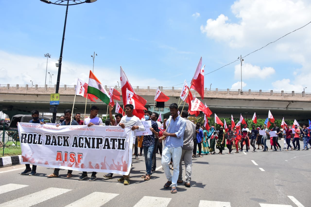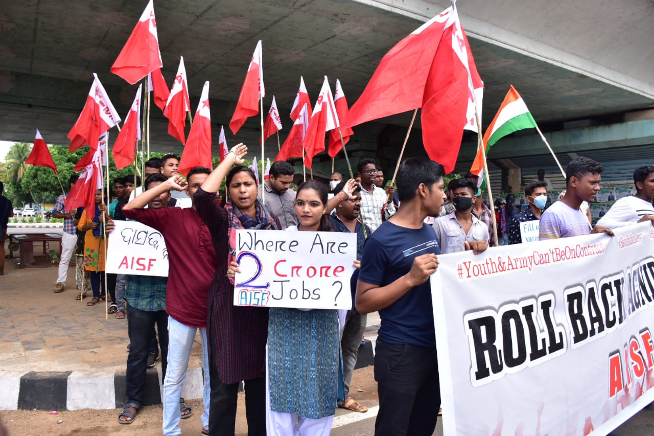 ଅଗ୍ନିପଥ ଯୋଜନାକୁ ବିରୋଧ କରି ଭୁବନେଶ୍ୱର ରାଜମହଲଠାରୁ ମାଷ୍ଟର କ୍ୟାଣ୍ଟିନ ଛକ ଯାଏ ଏଆଇଏସଏଫ ସଦସ୍ୟଙ୍କ ରାଲି