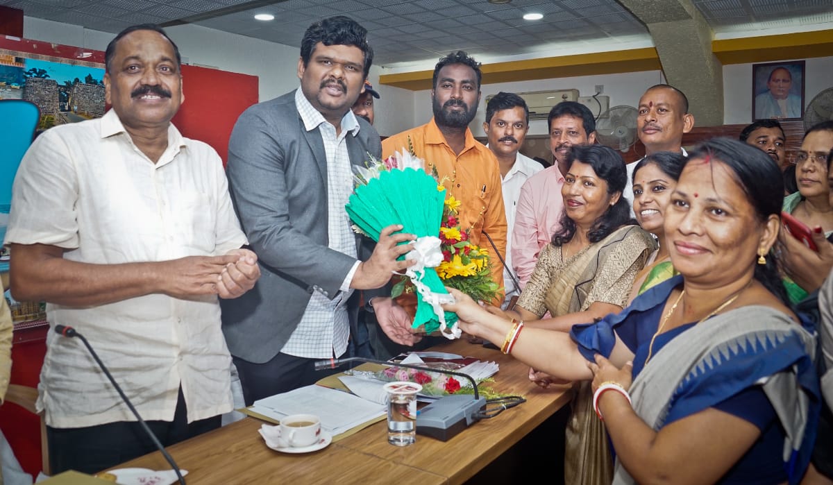 କଟକ ମହାନଗର ନିଗମ ବୈଠକରେ ନୂତନ ଭାବେ ଯୋଗ ଦେଇଥିବା କମିଶନର ନିଖିଲ ପବନ କଲ୍ୟାଣଙ୍କୁ ପୁଷ୍ପଗୁଚ୍ଛ ଦେଇ ସ୍ୱାଗତ ଜଣାଇଛନ୍ତି କର୍ପୋରେଟର୍ସ