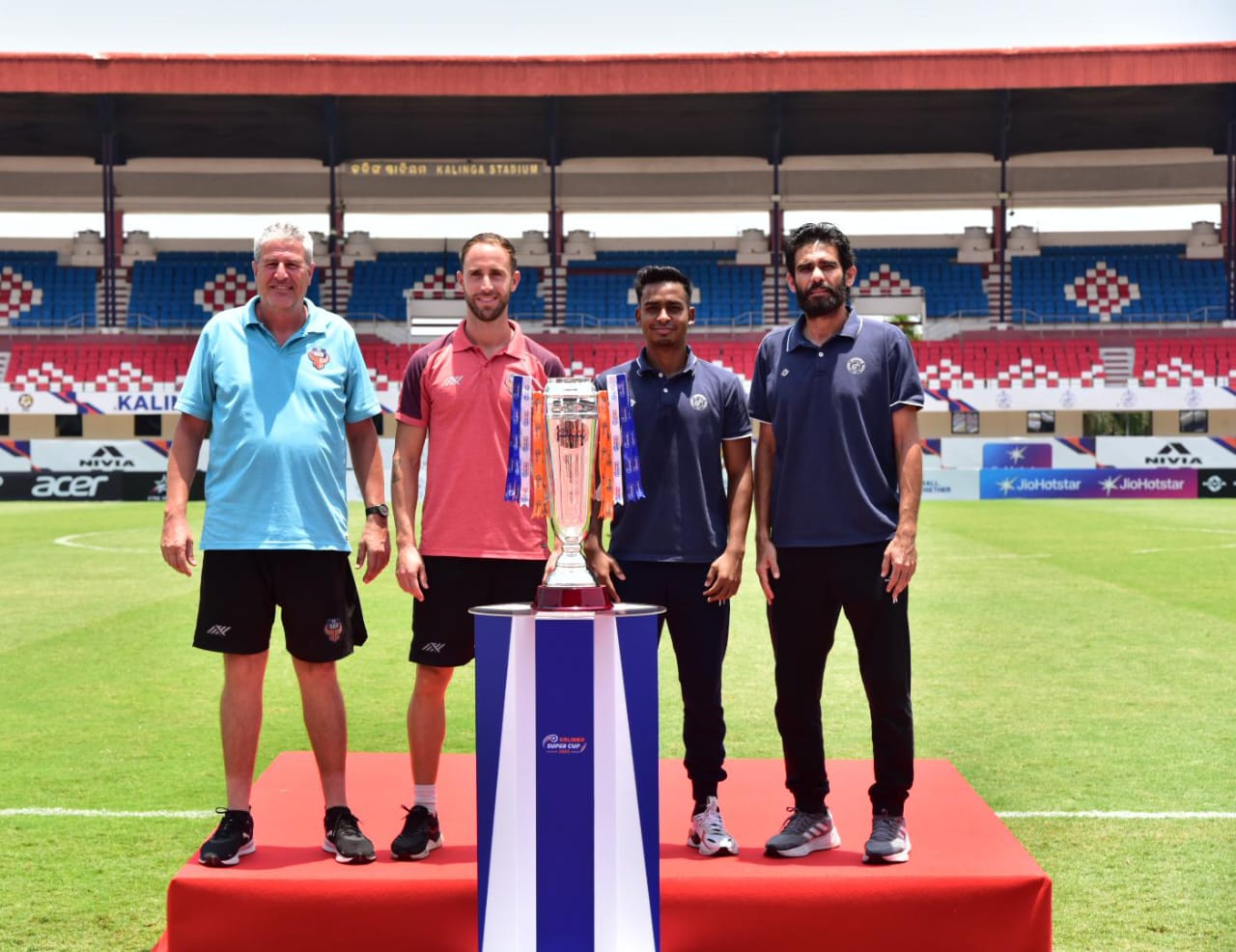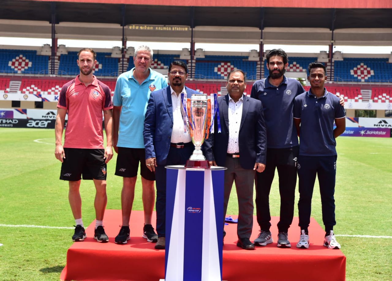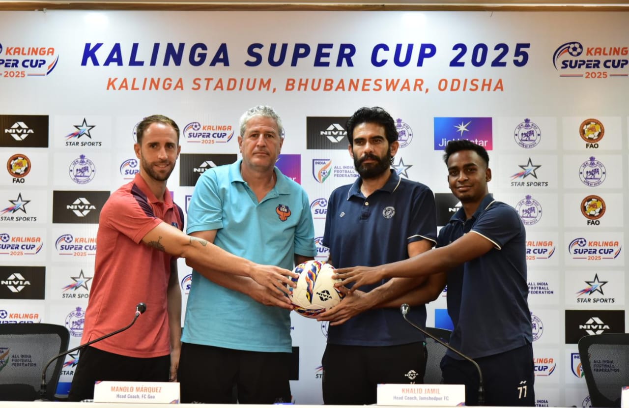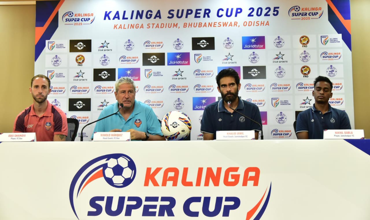 ଭୁବନେଶ୍ୱର କଳିଙ୍ଗ ଷ୍ଟାଡିୟମରେ କଳିଙ୍ଗ ସୁପର କପ୍ ଫାଇନାଲ ପୂର୍ବରୁ ଗୋଆ ଏଫସି, ଜାମସେଦପୁର ଏଫସିର ଫଟୋସୁଟ୍, ମ୍ୟାଚ୍ ପୂର୍ବରୁ ସାମ୍ବାଦିକ ସମ୍ମିଳନୀ