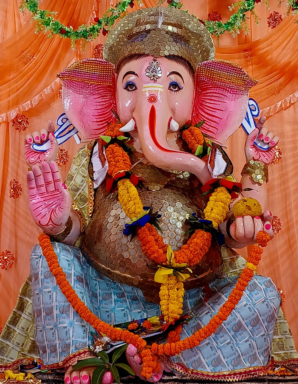 କଟକ ଯୋବ୍ରା ଜୟ ହନୁମାନ କ୍ଲବ ପକ୍ଷରୁ ମୁଦ୍ରା ଓ ଟଙ୍କାରେ ଖଚିତ ଗଣେଶ ପ୍ରତିମା