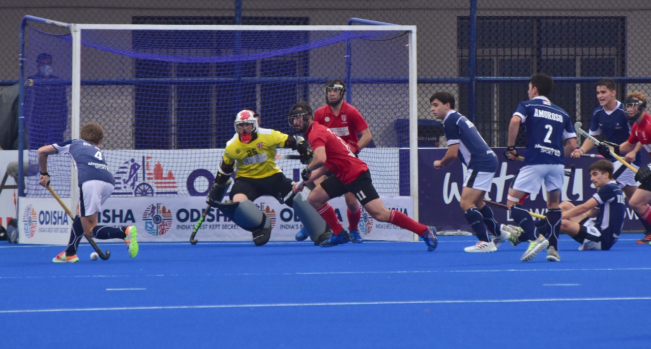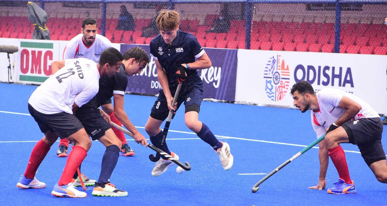 ଭୁବନେଶ୍ୱର କଳିଙ୍ଗ ଷ୍ଟାଡିୟମରେ ଏଫଆଇଏଚ ଓଡିଶା ହକି ପୁରୁଷ ଜୁନିୟର ବିଶ୍ୱକପରେ ୟୁନାଇଟେଡ଼ ଷ୍ଟେଟ୍ସ ଓ ଇଜିପ୍ଟ ମଧ୍ୟରେ ଅନୁଷ୍ଠିତ ମ୍ୟାଚ୍: ୟୁନାଇଟେଡ଼ ଷ୍ଟେଟ୍ସ ୩-୦ ଗୋଲରେ ବିଜୟୀ