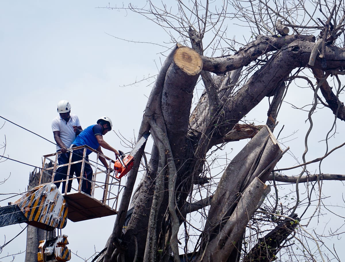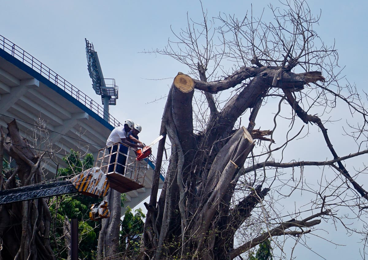 କଟକ ବାରବାଟୀ ଷ୍ଟାଡ଼ିଅମ ରାସ୍ତା ପାର୍ଶ୍ୱରେ ଶୁଷ୍କ ଅବସ୍ଥାରେ ଥିବା ଵୃକ୍ଷକୁ ଓଡ୍ରାଫ କର୍ମଚାରୀ ମାନେ ଛେଦନ କରୁଛନ୍ତି