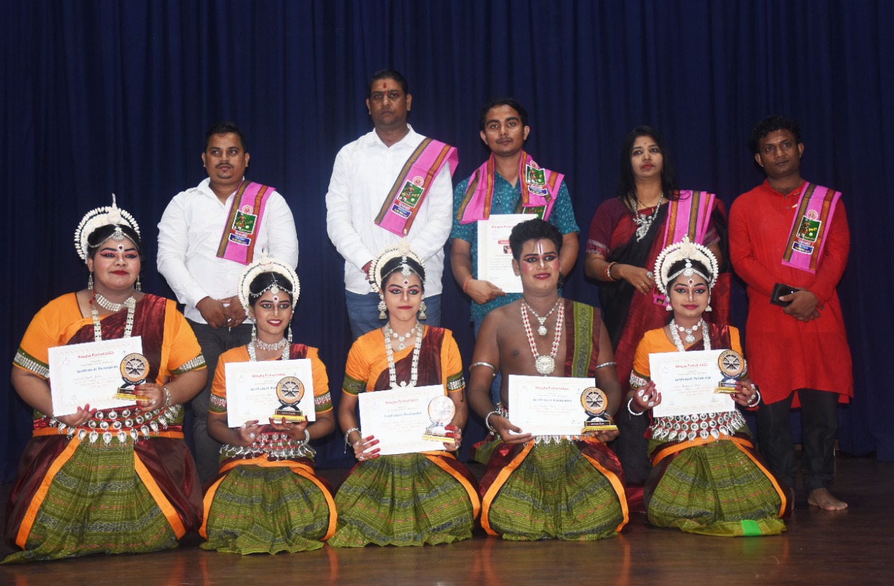 ଭୁବନେଶ୍ୱର ସ୍ଥିତ ସୂଚନା ଭବନରେ ଅନ୍ତର୍ଜାତୀୟ ନୃତ୍ୟ ଉତ୍ସବ ଅବସରରେ ଅନୁଷ୍ଠିତ ପ୍ରତିଯୋଗିତାରେ ଭାଗ ନେଇଥିବା ପ୍ରତିଯୋଗୀଙ୍କୁ ଅତିଥିମାନେ ସାର୍ଟିଫିକେଟ ପ୍ରଦାନ କରୁଛନ୍ତି