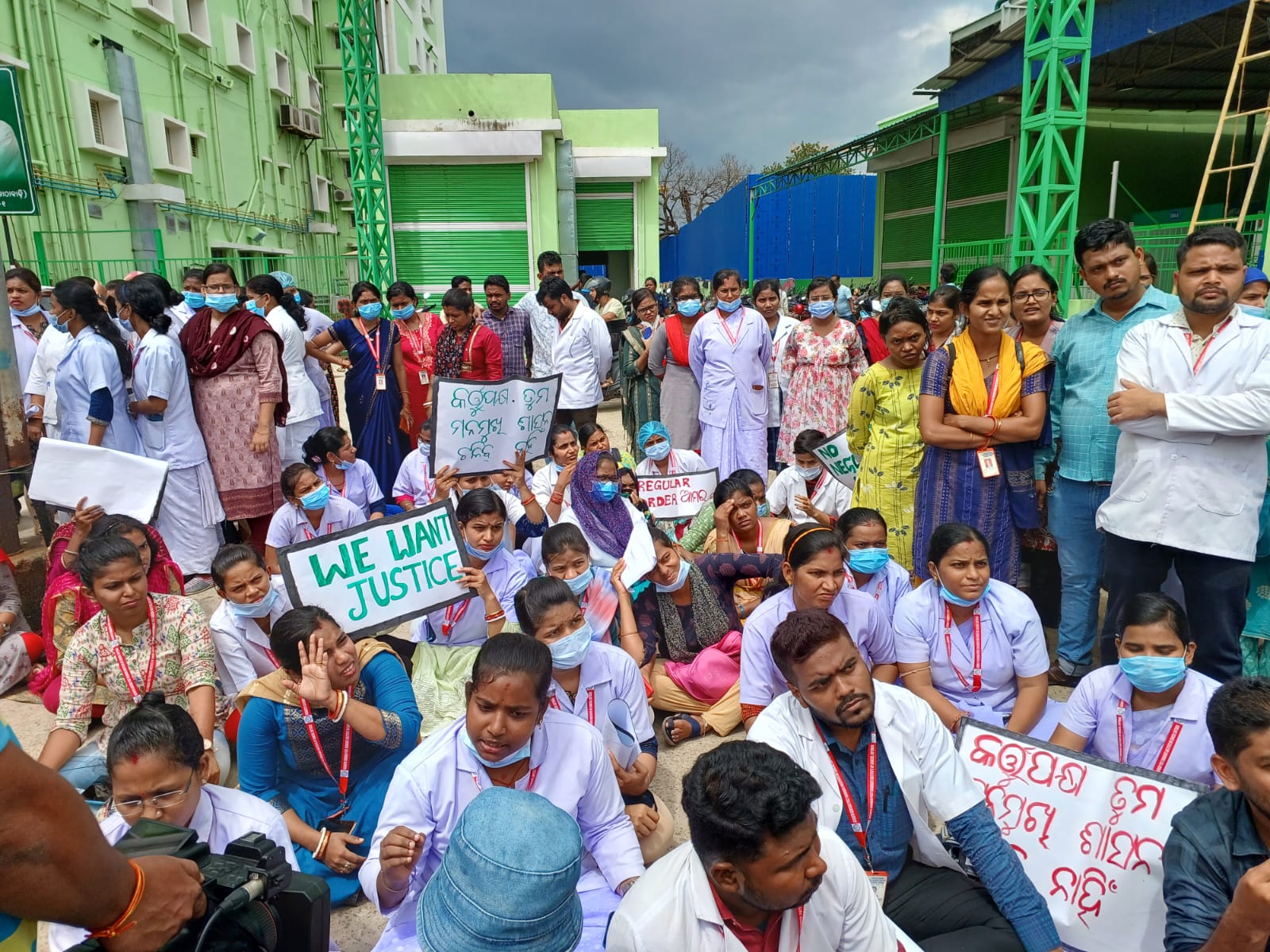 କଟକ ସ୍ଥିତ ଆଚାର୍ଯ୍ୟ ହରିହର ପୋଷ୍ଟ ଗ୍ରାଜୁଏଟ ଇନଷ୍ଟିଚ୍ୟୁଟ ଅଫ କ୍ୟାନସର ପରିସରରେ ବିଭିନ୍ନ ଦାବି ନେଇ ଚୁକ୍ତିଭିତ୍ତିକ ପାରା ମେଡିକାଲ ଷ୍ଟାଫ ଏବଂ ନର୍ସିଙ୍ଗ ଷ୍ଟାଫଙ୍କ ଆନ୍ଦୋଳନ