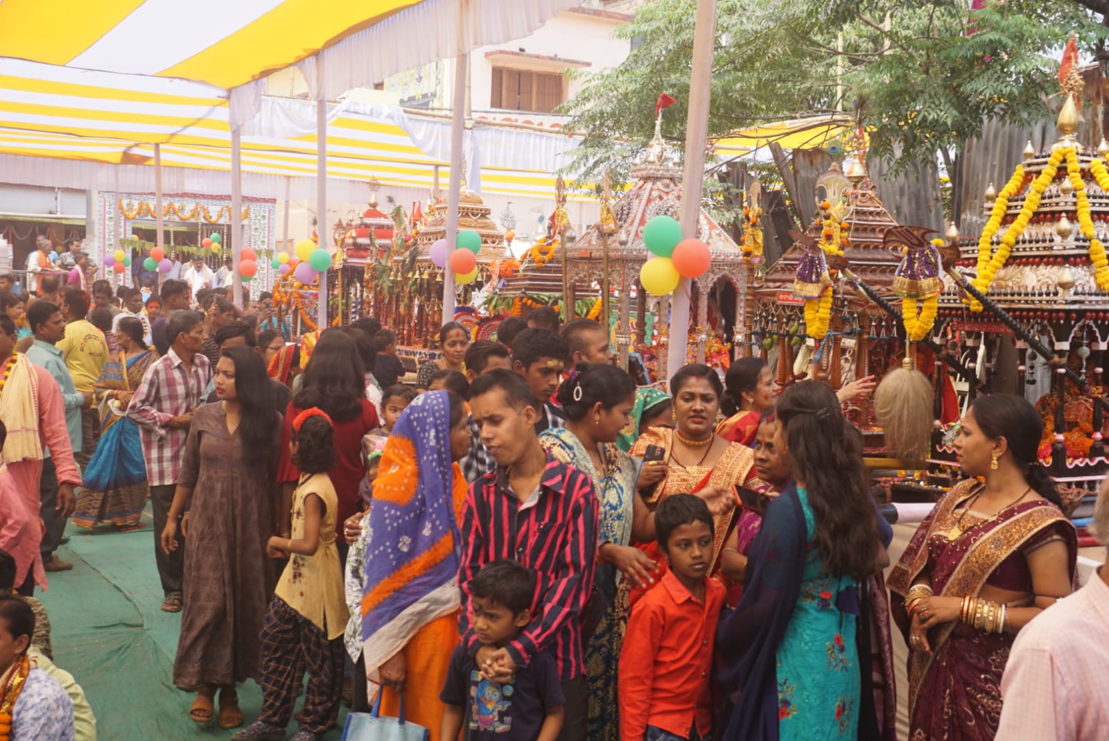 କଟକ ଦୋଳମୁଣ୍ଡାଇ ଚନ୍ଦନ ପଡିଆରୁ ଶୋଭାଯାତ୍ରାରେ ବାହାରି ବକ୍ସିବଜାର ବଢ଼େଇସାହି ବାସ୍ତରୀ ମଠ ମେଳଣ ପଡିଆରେ ପହଞ୍ଚିଥିବା ଦୋଳ ବିମାନ