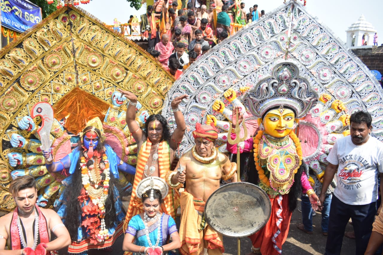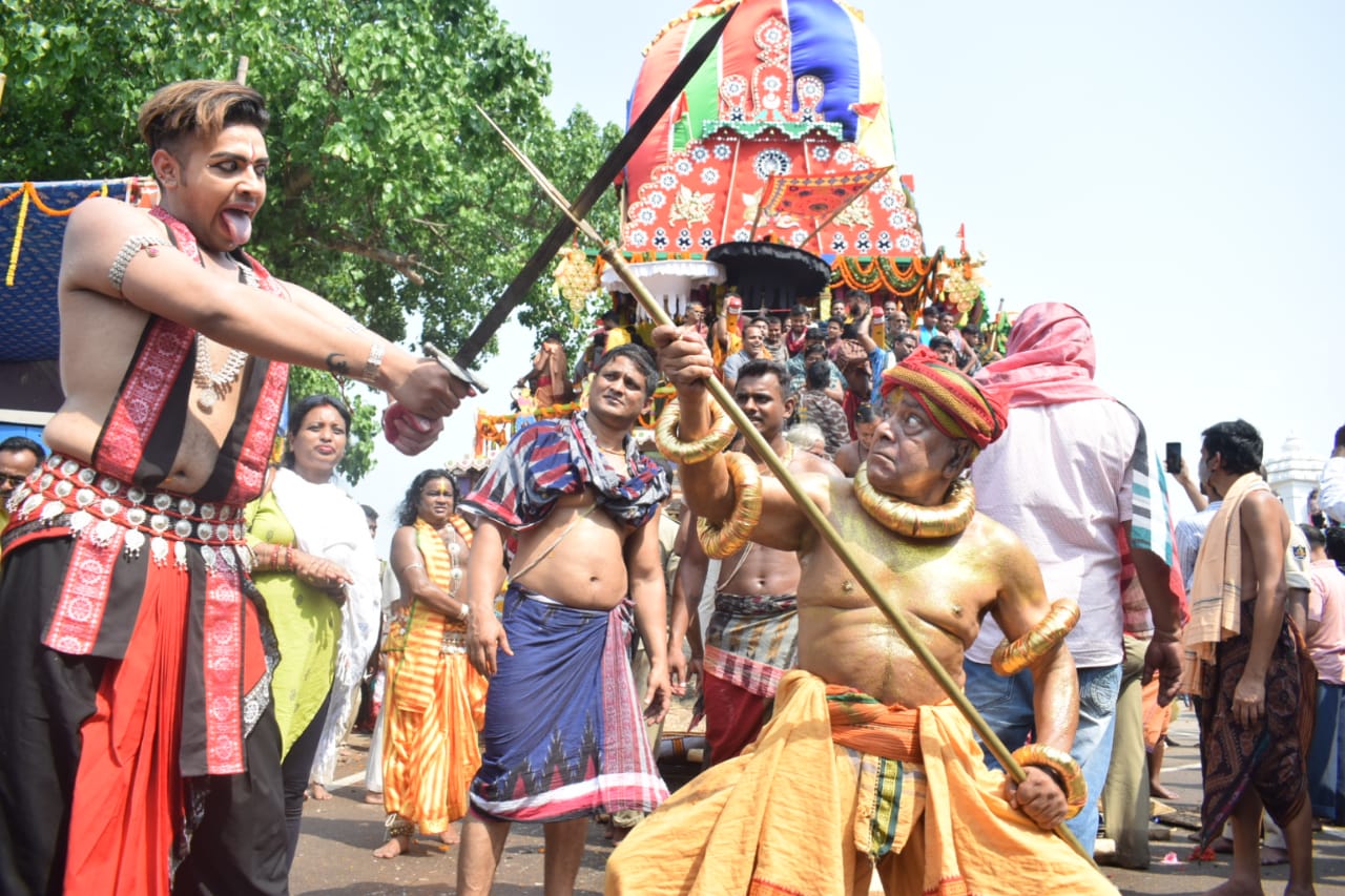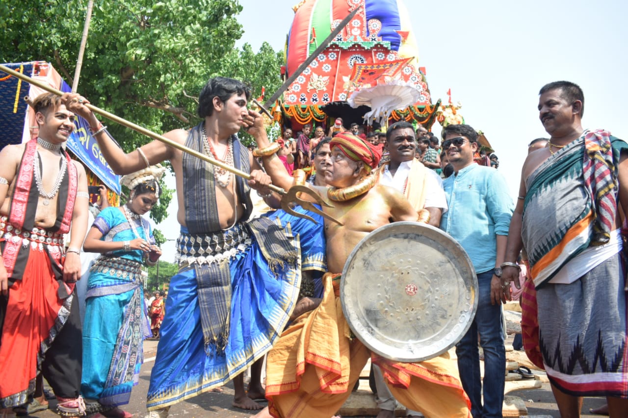 କଟକ ସନସାଇନ ପଡିଆ ନିକଟରୁ ମା’ ମହେଶ୍ୱରୀଙ୍କ ଋକୁଣା ରଥକୁ ଶ୍ରଦ୍ଧାଳୁମାନେ ଟାଣି ଟାଉନହଲସ୍ଥିତ ମାଉସୀ ମା’ ମନ୍ଦିରକୁ ନେଉଛନ୍ତି