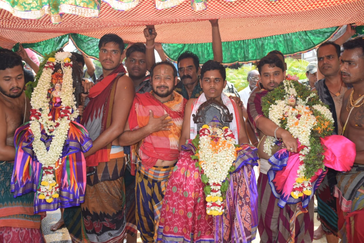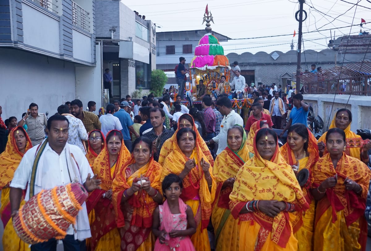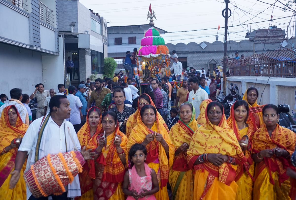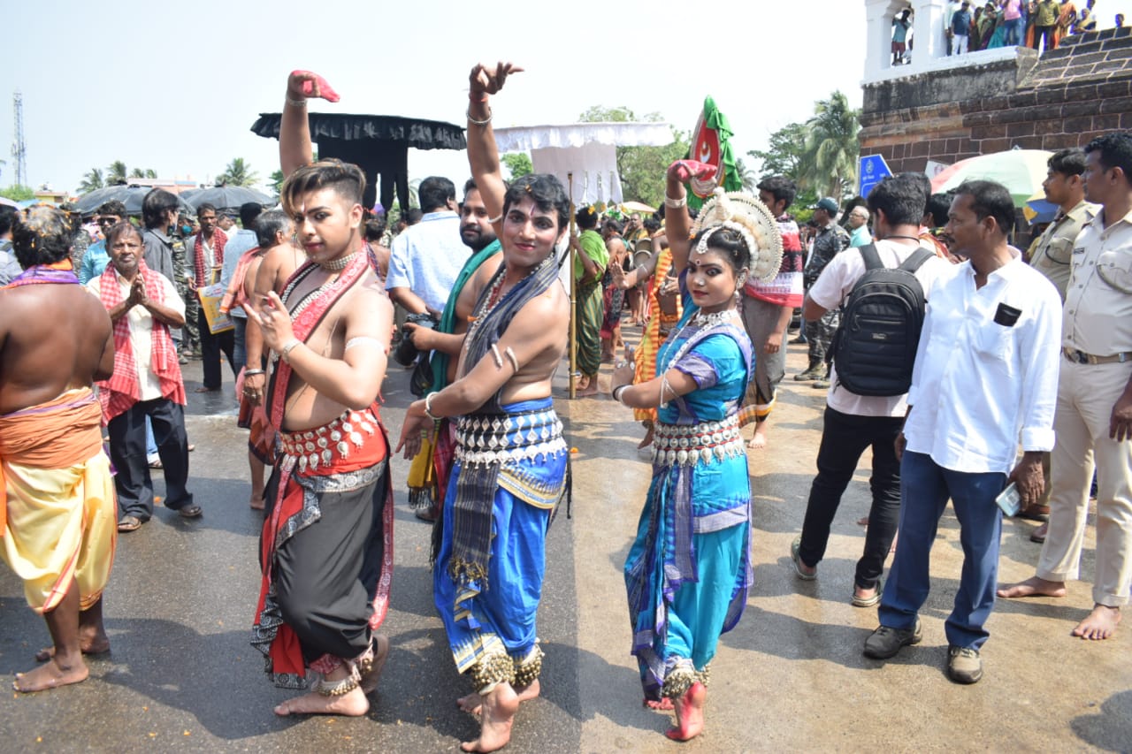 କଟକ ସନସାଇନ ପଡିଆ ନିକଟରୁ ମା’ ମହେଶ୍ୱରୀଙ୍କ ଋକୁଣା ରଥକୁ ଶ୍ରଦ୍ଧାଳୁମାନେ ଟାଣି ଟାଉନହଲସ୍ଥିତ ମାଉସୀ ମା’ ମନ୍ଦିରକୁ ନେଉଛନ୍ତି