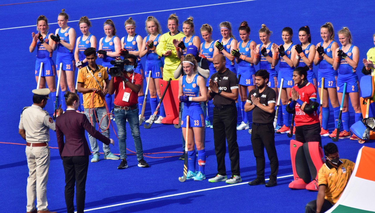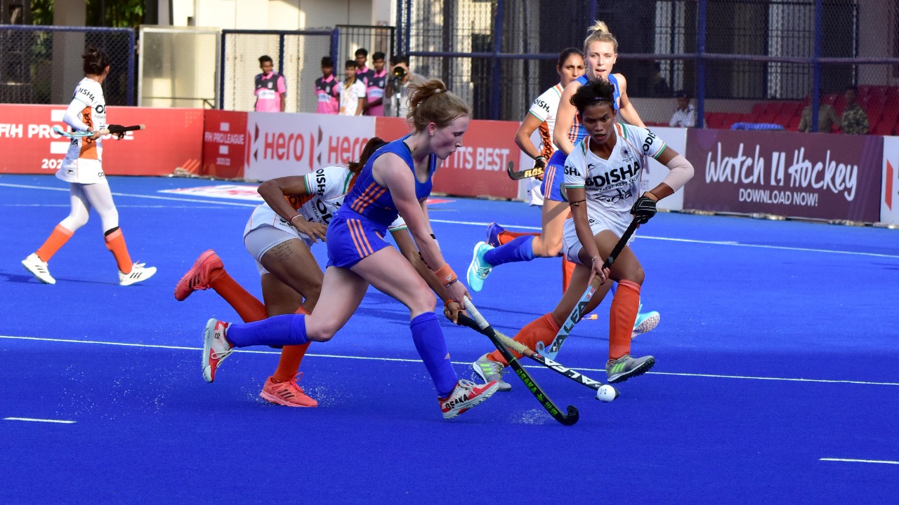 ଭୁବନେଶ୍ୱର କଳିଙ୍ଗ ଷ୍ଟାଡିୟମରେ ଅନୁଷ୍ଠିତ ଏଫଆଇଏଚ ଓମେନ୍ସ ହକି ପ୍ରୋ ଲିଗରେ ଭାରତ ଏବଂ ନେଦରଲାଣ୍ଡସ ମଧ୍ୟରେ ମ୍ୟାଚ: ନେଦରଲାଣ୍ଡସ ଶୁଟଆଉଟ ୩-୧ ରେ ବିଜୟୀ