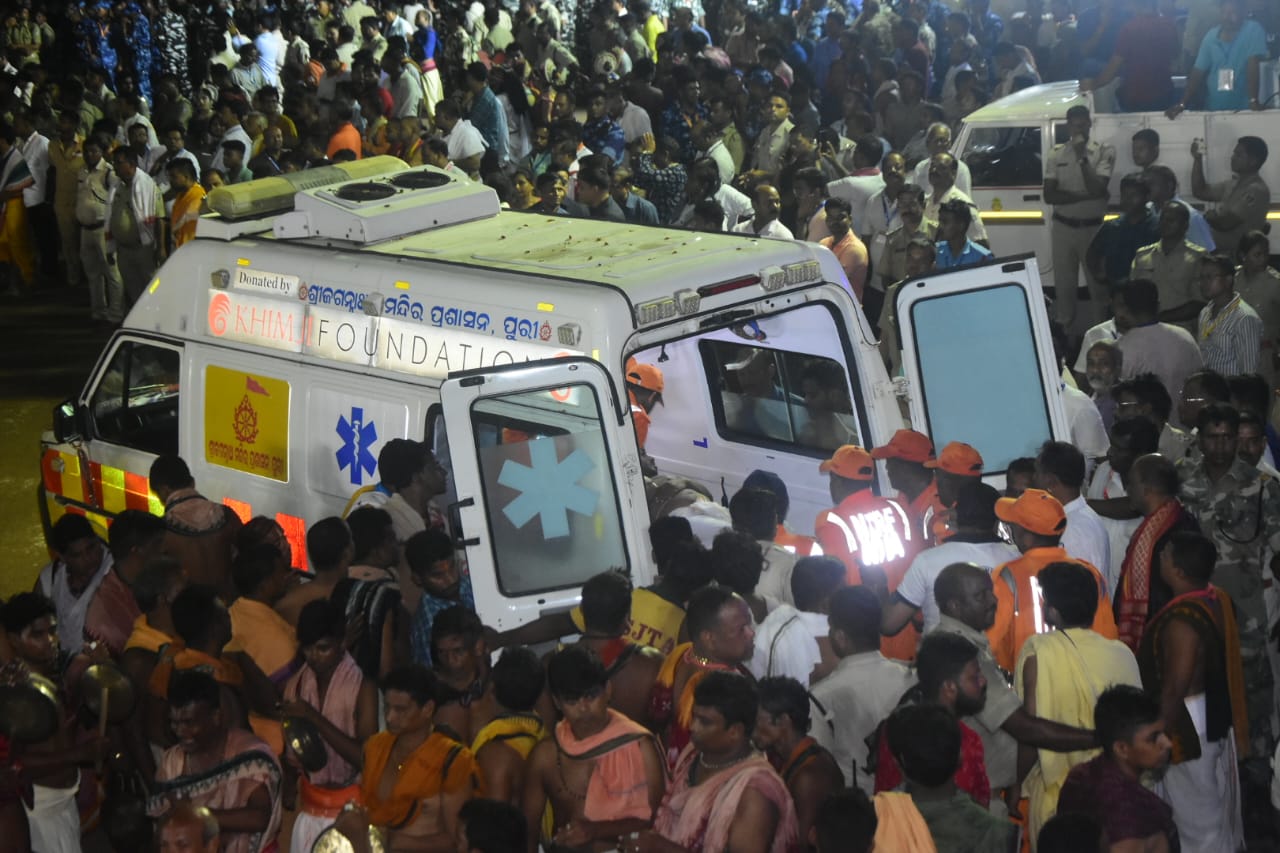 ପହଣ୍ଡି ବିଜେ ବେଳେ ତାଳଧ୍ୱଜ ରଥରେ ଅଘଟଣ ପରେ ଆହତ ସେବାୟତଙ୍କୁ ଆମ୍ବୁଲାନ୍ସରେ ମେଡିକାଲ ନିଆଯାଉଛି