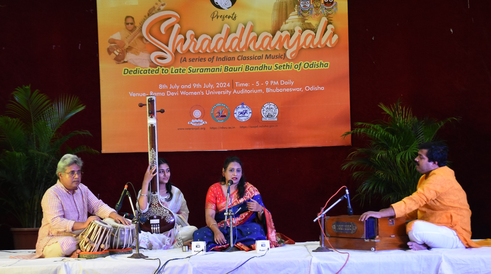 ଭୁବନେଶ୍ୱରସ୍ଥିତ ରମାଦେବୀ ମହିଳା ବିଶ୍ୱବିଦ୍ୟାଳୟରେ ଆୟୋଜିତ ଭାରତୀୟ ଶାସ୍ତ୍ରୀୟ ସଙ୍ଗୀତ କାର୍ଯ୍ୟକ୍ରମ ‘ଶ୍ରଦ୍ଧାଞ୍ଜଳି’ରେ ଦିଲ୍ଲୀର ସ୍ଵରାଞ୍ଜଳି ଦ୍ୱାରା ପରିବେଷିତ ସଙ୍ଗୀତ