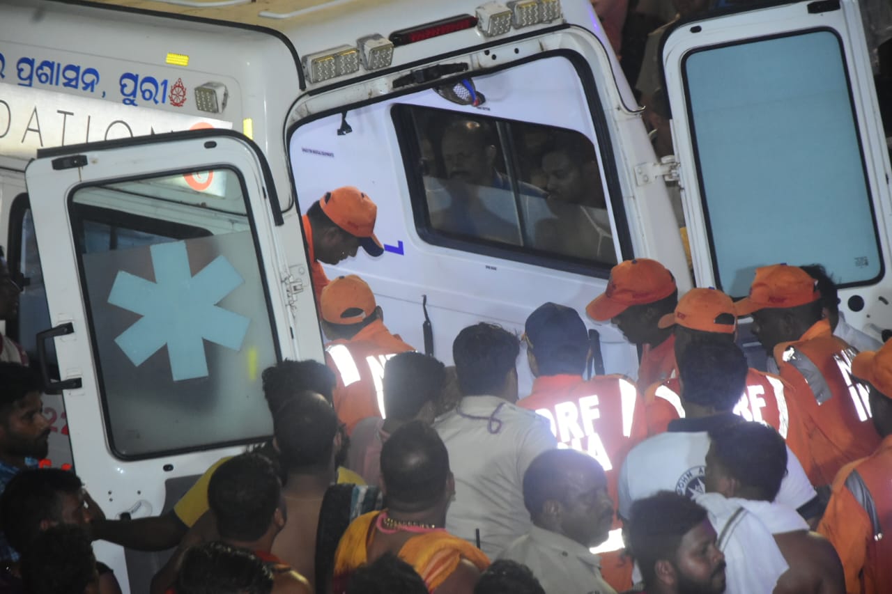 ପହଣ୍ଡି ବିଜେ ବେଳେ ତାଳଧ୍ୱଜ ରଥରେ ଅଘଟଣ ପରେ ଆହତ ସେବାୟତଙ୍କୁ ଆମ୍ବୁଲାନ୍ସରେ ମେଡିକାଲ ନିଆଯାଉଛି