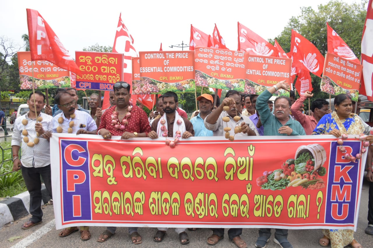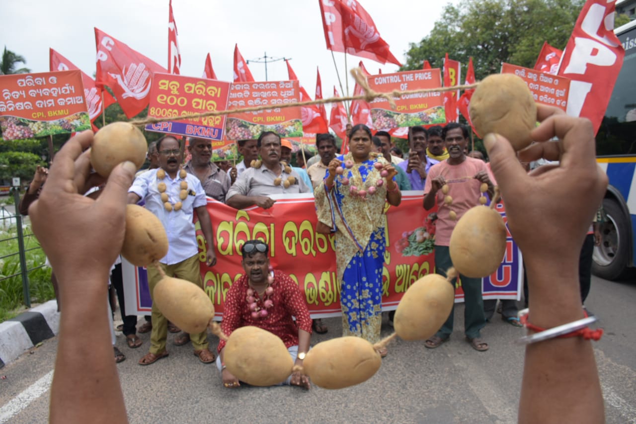 ଅହେତୁକ ପରିବା ଦର ବୃଦ୍ଧି ବିରୋଧରେ ସିପିଆଇ ପକ୍ଷରୁ ଭୁବନେଶ୍ୱରସ୍ଥିତ ରାଜମହଲ ଛକରେ ପ୍ରତିବାଦ