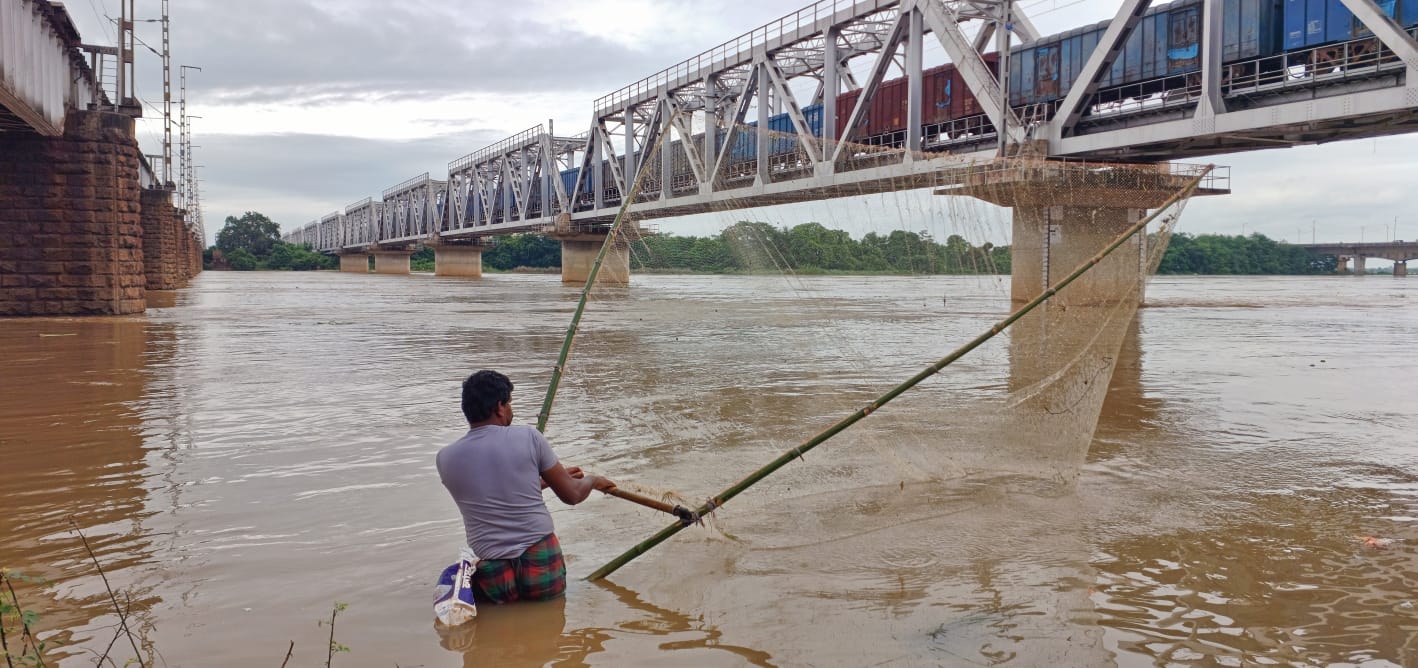 କଟକ ଯୋବ୍ରା ଆନିକଟଠାରେ ଜଣେ ଲୋକ ମାଛ ଧରୁଛନ୍ତି