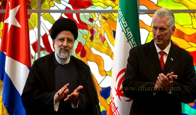 ହବାନା,୧୬।୬: ଇରାନର ରାଷ୍ଟ୍ରପତି ଇବ୍ରାହିମ ରଇସି କ୍ୟୁବାର ରାଷ୍ଟ୍ରପତି ମିଗୁଏଲ ଡିଆଜ-କାନେଲଙ୍କୁ ସାକ୍ଷାତ କରିଛନ୍ତି। କ୍ୟୁବାର ରାଜଧାନୀ ହବାନାରେ ସେମାନେ ପରସ୍ପରକୁ ଭେଟିଛନ୍ତି। ସାକ୍ଷାତକାରେ ଉଭୟ ନେତା ଆମେରିକା ଉପରେ ବର୍ଷିଛନ୍ତି। କ୍ୟୁବା ରାଷ୍ଟ୍ରପତି ମିଗୁଏଲ କହିଛନ୍ତି, ଉଭୟ ଦେଶ ଦୃଢ ପ୍ରତିରୋଧ, ପ୍ରତିବନ୍ଧକ, ଚାପ, ଧମକ, ଅବରୋଧ ଏବଂ ଆମେରିକାର ସାମ୍ରାଜ୍ୟବାଦର ସମ୍ମୁଖୀନ ହୋଇଛନ୍ତି। ଇରାନ ରାଷ୍ଟ୍ରପତିଙ୍କ କ୍ୟୁବା ଗସ୍ତରେ ବହୁ ଚୁକ୍ତିନାମା ସ୍ବାକ୍ଷାରିତ ହୋଇଛି। ଦୁଇ ଦେଶ ମଧ୍ୟରେ ସୀମା ଶୁଳ୍କ, ଟେଲି ଯୋଗାଯୋଗ ଅନେକ ଚୁକ୍ତିନାମା ହୋଇଥିଲା।