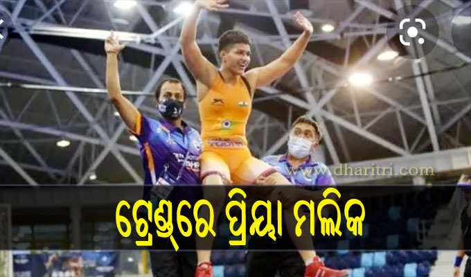ବୁଦାପେଷ୍ଟ,୨୫।୭: ଟୋକିଓ ଅଲମ୍ପିକ୍ସରେ ଭାରତୀୟ ଦଳ ଏକ ଭଲ ଆରମ୍ଭ କରିଛି। ପ୍ରଥମ ଦିନରେ ଓ୍ବେଟ୍‌ଲିପ୍ଟର ମୀରବାଇ ଚାନୁ ରୌପ୍ୟ ପଦକ ଜିତିଛନ୍ତି। ଏହାପରେ ସେ ସୋସିଆଲ ମିଡିଆରେ ଟ୍ରେଣ୍ଡ୍‌ ହେବା ଆରମ୍ଭ କରିଛନ୍ତି। ଏହାର ଗୋଟିଏ ଦିନ ପରେ ଭାରତୀୟ ରେସଲର୍‌ ପ୍ରିୟା ମଲିକ ମଧ୍ୟ ଟୁଇଟର୍‌ରେ ଟ୍ରେଣ୍ଡ କରୁଛନ୍ତି। ହଙ୍ଗେରୀର ବୁଦାପେଷ୍ଟରେ ଚାଲିଥିବା ବିଶ୍ୱ କ୍ୟାଡେଟ ରେସଲିଂ ଚାମ୍ପିଅନସିପରେ ଭାରତୀୟ ରେସଲର ପ୍ରିୟା ମଲିକ ଚମତ୍କାର ପ୍ରଦର୍ଶନ କରି ସ୍ବର୍ଣ୍ଣ ପଦକ ଜିତିଛନ୍ତି। ଚାମ୍ପିଅନସିପର ଶେଷ ଦିନରେ ପ୍ରିୟା ୭୩ କିଲୋଗ୍ରାମ ବର୍ଗର ଫାଇନାଲରେ ବେଲାରୁଷର ରେସଲରଙ୍କୁ ୫-୦ ରେ ପରାସ୍ତ କରିଛନ୍ତି। ଏହାପରେ ତାଙ୍କୁ ଲୋକେ ସୋସିଆଲ ମିଡିଆରେ ଶୁଭେଚ୍ଛା ଜଣାଇବାକୁ ଲାଗିଥିଲେ। ଏସବୁ ଭିତରେ କିଛି ଲୋକ ତାଙ୍କୁ ଟୋକିଓ ଅଲିମ୍ପିକ୍ସରେ ସ୍ବର୍ଣ୍ଣ ଜିତିବା କହି ଶୁଭେଚ୍ଛା ଜଣାଇଥିଲେ। ଏଥିରେ ବଡ ବଡ ସେଲିବ୍ରିଟି ମଧ୍ୟ ସାମିଲ ଥିଲେ। ପରେ ସତ୍ୟାସତ୍ୟ ଜାଣିବା ପରେ ସେମାନେ ଟୁଇଟ୍‌ ଡିଲିଟ୍‌ କରିବାକୁ ବାଧ୍ୟ ହୋଇଥିଲେ।
