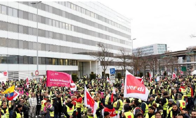 ବର୍ଲିନ,୨୮ ।୩: ଜର୍ମାନୀରେ ସୋମବାର କର୍ମଚାରୀମାନେ ସାମୁହିକ ଧର୍ମଘଟ କରିବାରୁ ଟ୍ରେନ, ବିମାନ ଓ ସାର୍ବଜନିକ ପରିବହନ ବ୍ୟବସ୍ଥା ଠପ ହୋଇଯାଇଛି । ସୂଚନାଯୋଗ୍ୟ, ମୁଦ୍ରାସ୍ଫିତିର ଦର ବଢିବାରୁ ଏହାର ପ୍ରଭାବ ବେତନ ଓ ମହଙ୍ଗା ମାଡ ଉପରେ ପଡୁଛି । ଏହାକୁ ବିରୋଧ କରି ଶ୍ରମିକ ସଂଘ ଧର୍ମଘଟ ଡାକରା ଦେଇଛନ୍ତି । ୨୪ ଘଣ୍ଟାର ୱାକଆଉଟରେ ଟ୍ରେନ, ବିମାନ ଓ କାର୍ଗୋ ପରିବହନ ଉପରେ ବି ପ୍ରଭାବ ପଡିଛି । ବିମାନ ବନ୍ଦର ଓ ଜଳମାର୍ଗ ବା ବନ୍ଦର କର୍ମଚାରୀମାନେ ବି ଏହି ଧର୍ମଘଟରେ ସାମିଲ ହୋଇ ଯାଇଛନ୍ତି ।