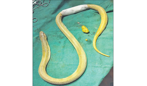 ପୁରୀ ଜିଲା ଡେଲାଙ୍ଗ ବ୍ଲକ ଅନ୍ତର୍ଗତ ପ୍ରହରାଜପୁର ଗ୍ରାମର ବସନ୍ତ ବେହେରା ତାଙ୍କ ବାଡିରେ ମଙ୍ଗଳବାର ଏହି ସାପକୁ ଦେଖିଥିଲେ। ଏହାପରେ ସେ ପଡୋଶୀ ଘରେ ରହୁଥିବା ସ୍ନେକ୍ ହେଲ୍ପ ଲାଇନ୍ ସଦସ୍ୟ ସୁଶାନ୍ତ କୁମାର ବେହେରାଙ୍କୁ ଖବର ଦେଇଥିଲେ। ସୁଶାନ୍ତ ଏହି ୪ଫୁଟ ଲମ୍ବର ନାଗ ସାପକୁ ଉଦ୍ଧାର କରିବା ସମୟରେ ତା’ ପେଟ ଭିତରେ କିଛି କଠିନ ପଦାର୍ଥ ଥିବା ଦେଖିବାକୁ ପାଇଥିଲେ। ଏହାପରେ ଡେଲାଙ୍ଗ ରେଞ୍ଜ ଅଫିସରଙ୍କ ପରାମର୍ଶକ୍ରମେ ସୁଶାନ୍ତ ସାପଟିକୁ ସ୍ନେକ ହେଲ୍ପ ଲାଇନ କାର୍ଯ୍ୟାଳୟ ଆଣିବା ପରେ ଭେଟେରିନାରି କଲେଜରେ ତାହାର ଚିକିତ୍ସା କରାଯାଇଥିଲା। ଏନେଇ ପ୍ରଫେସର ନାଥ କହିଛନ୍ତି, ୩୦ ବର୍ଷର ଚାକିରି କାଳ ମଧ୍ୟରେ ସାପ ଜାମୁରୋଳ ଖାଇବା କେବେ ଦେଖି ନ ଥିଲି। ଅପରେଶନ ପରେ ସାପଟି ସୁସ୍ଥ ଅଛି। ତାକୁ ଆଣ୍ଟିବାୟୋଟିକ୍ ଏବଂ ପେନ୍କିଲର ଇଞ୍ଜେକ୍ସନ ଦିଆଯିବା ସହ ଅବଜରଭେଶନରେ ରଖାଯାଇଛି।
