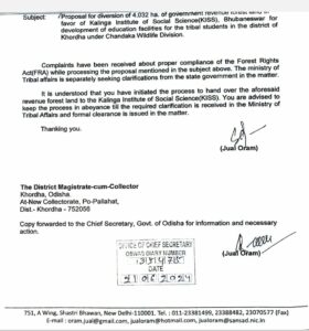 ତେବେ କେନ୍ଦ୍ର ଆଦିବାସୀ ମନ୍ତ୍ରଣାଳୟ ଏହି ଚିଠିରେ ଲେଖିଛନ୍ତି ଯେ ଏହି ପ୍ରସ୍ତାବ ପ୍ରକ୍ରିୟାକରଣ ବେଳେ ଜଙ୍ଗଲ ଅଧିକାର ଆଇନ (ଏଫଆରଏ) କୁ ଉପଯୁକ୍ତ ପାଳନ କରିବା ନେଇ ଅଭିଯୋଗ ଆସିଛି। ଏହି ଦୃଷ୍ଟିରୁ ଆଦିବାସୀ ବ୍ୟାପାର ମନ୍ତ୍ରଣାଳୟ ଏହି ପ୍ରସଙ୍ଗରେ ରାଜ୍ୟ ସରକାରଙ୍କଠାରୁ ସ୍ପଷ୍ଟୀକରଣ ମାଗୁଛି।