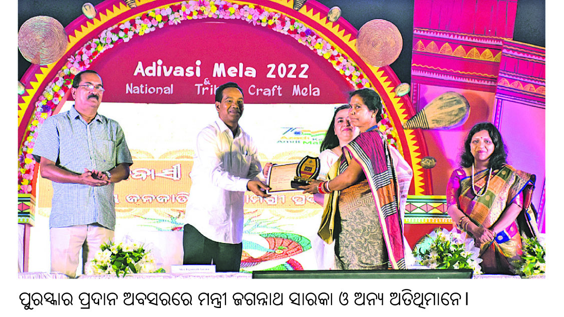 ଭୁବନେଶ୍ୱର, ୩।୫(ବ୍ୟୁରୋ):ଭୁବନେଶ୍ୱର ପ୍ରଦର୍ଶନୀ ପଡ଼ିଆରେ ୧୦ଦିନ ଧରି ଚାଲିଥିବା ଆଦିବାସୀ ମେଳା ସୋମବାର ଉଦ୍ଯାପିତ ହୋଇଯାଇଛି। ଅନୁସୂଚିତ ଜନଜାତି ଓ ଅନୁସୂଚିତ ଜାତି ଉନ୍ନୟନ ବିଭାଗ ପକ୍ଷରୁ ଆୟୋଜିତ ଏହି ମେଳାରେ ବିଭିନ୍ନ ଜନଜାତିଙ୍କ ଦ୍ୱାରା ପ୍ରସ୍ତୁତ ହସ୍ତଶିଳ୍ପ ଓ କୃଷିଜାତ ସାମଗ୍ରୀ ତଥା ସେମାନଙ୍କ ଦ୍ୱାରା ସଂଗୃହୀତ ବନଜାତ ପଦାର୍ଥଗୁଡ଼ିକର ବହୁଳ ପ୍ରଦର୍ଶନ ଓ ବିକ୍ରିର ବ୍ୟବସ୍ଥା ରହିଥିଲା। କୋଭିଡ୍ କଟକଣା ଆଧାରରେ ଚଳିତ ବର୍ଷ ଆଦିବାସୀ ମେଳାରେ ଆଦିବାସୀ ଗାଁର ମଡେଲ ନ ଥିଲା, ତଥାପି ପ୍ରଚୁର ଜନସମାଗମ ଆଦିବାସୀ ମେଳା ପ୍ରତି ଭଲ ପାଇବା ସୂଚାଇ ଦେଉଥିଲା। ପ୍ରାୟ ୬ ଲକ୍ଷ ୫୦ ହଜାର ଲୋକ ମେଳା ପରିଦର୍ଶନ କରିବାବେଳେ ୪କୋଟି ଟଙ୍କାରୁ ଊର୍ଦ୍ଧ୍ୱ କାରବାର ହୋଇଥିବା ପ୍ରାଥମିକ ଅଟକଳରୁ ଜଣାପଡ଼ିଛି। ଏଥିସହ କାରବାର କ୍ଷେତ୍ରରେ ଶ୍ରେଷ୍ଠ ବିବେଚିତ ହୋଇଥିବା ବିଭିନ୍ନ ଷ୍ଟଲ ଓ ସଂସ୍ଥାଗୁଡ଼ିକୁ ଉଦ୍ଯାପନୀ ଉତ୍ସବରେ ପୁରସ୍କୃତ କରାଯାଇଛି।