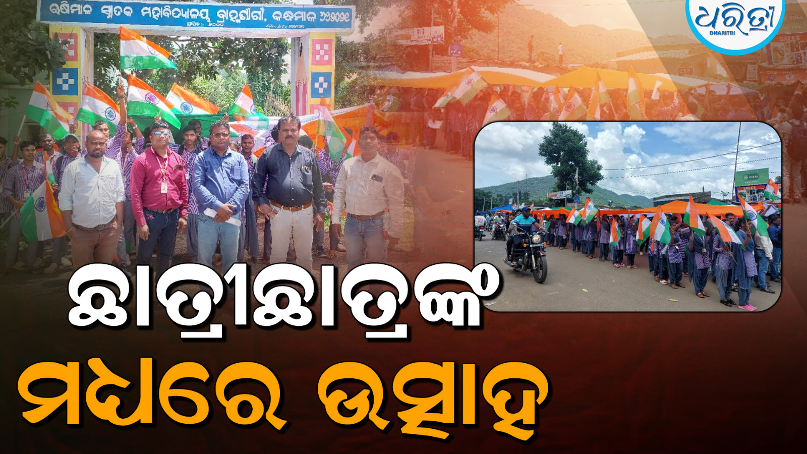 ପ୍ରକାଶ ଯେ, ରାଜ୍ୟ ସରକାରଙ୍କ ଉଚ୍ଚଶିକ୍ଷା ବିଭାଗର ନିର୍ଦ୍ଦେଶ ଏବଂ ସଂସ୍କୃତି ବିଭାଗର ସହଯୋଗରେ ଏହି କାର୍ଯ୍ୟକ୍ରମ ଅନୁଷ୍ଠିତ ହୋଇଯାଇଛି। ଏହି ପ୍ରରିପ୍ରେକ୍ଷୀ ରେ ବ୍ରାହ୍ମଣୀଗାଁ ଋଷିମାଳ ମହାବିଦ୍ୟାଳୟ ପରିସରରୁ ବିରାଟ ତ୍ରିରଙ୍ଗା ଶୋଭାଯାତ୍ରା ସହର ଅଭିମୁଖେ ଯାତ୍ରା କରିଥିଲା। ମହାବିଦ୍ୟାଳୟର ଛାତ୍ରୀଛାତ୍ରମାନେ ପ୍ରାୟ ୫୦ ମିଟର ଲମ୍ବର ତ୍ରିରଙ୍ଗା ଧରି ସହର ପରିକ୍ରମା କରିଥିଲେ। ସମସ୍ତଙ୍କ ମନରେ ଦେଶାତ୍ମକ ଭାବନାରେ ଉତ୍ସାହ ଦେଖିବାକୁ ମିଳିଥିଲା। ସେହିପରି ଦାରିଙ୍ଗବାଡିଠାରେ ମଧ୍ୟ ଏହି ଶୋଭାଯାତ୍ରା ଅନୁଷ୍ଠିତ ହୋଇଯାଇଛି। ବ୍ରାହ୍ମଣୀଗାଁ ଋଷିମାଳ ମହାବିଦ୍ୟାଳୟର ଅଧ୍ୟକ୍ଷ ଡ଼ଃ ଭାସ୍କର ନାୟକଙ୍କ ତତ୍ତ୍ୱାବଧାନରେ ଅଧ୍ୟାପକ ଉପେନ୍ଦ୍ର କୁମାର ଛଟେଇ, ଅମିତ କୁମାର ନାୟକ, ମନୋରଞ୍ଜନ ବଳିୟାର ସିଂ, ସମୀର ପ୍ରସାଦ ମାଇକଲ, ସୁଜ୍ଞାନ ସାହୁ, କ୍ରିଷ୍ନା କୁମାର ମାଝୀ,