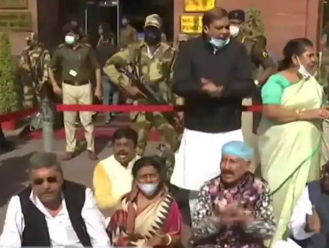 ନୂଆଦିଲ୍ଲୀ,୨୨ ।୧୧: ତ୍ରିପୁରାରେ ପୋଲିସ ବର୍ବରତାକୁ ନେଇ ପଶ୍ଚିମବଙ୍ଗ ମୁଖ୍ୟମନ୍ତ୍ରୀ ମମତା ବାନାର୍ଜିଙ୍କ ପାର୍ଟି ତ୍ରୁଣମୂଳ କଂଗ୍ରେସର ଏମ୍ପଙ୍କ ପ୍ରତିନିଧିମଣ୍ଡଳ ସୋମବାର ସ୍ୱରାଷ୍ଟ୍ର ମନ୍ତ୍ରଣାଳୟ ବାହାରେ ବିରୋଧ ପ୍ରଦର୍ଶନ କରିଛନ୍ତି । ଟିଏମ୍ସିର ଏମ୍ପିମାନେ ସ୍ୱରାଷ୍ଟ୍ରମନ୍ତ୍ରୀ ଅମିତ ଶାହଙ୍କ ସହ ସାକ୍ଷାତ୍ କରିବାକୁ ଅଡି ବସିଛନ୍ତି । ଡେରେକ ଓ ବ୍ରାୟନ, ସୁଖେନ୍ଦୁ ଶେଖର ରାୟ, ଶାନ୍ତନୁ ସେନ, ଡୋଲା ସେନଙ୍କ ସମେତ ତ୍ରୁଣମୂଳ କଂଗ୍ରେସର ୧୬ ଏମ୍ପି ସକାଳୁ ସକାଳୁ ଦିଲ୍ଲୀ ସ୍ଥିତ ତ୍ରୁଣମୂଳ କାର୍ଯ୍ୟାଳୟରେ ପହଞ୍ଚିଥିଲେ । ସୂଚନାଯୋଗ୍ୟ, ସ୍ୱରାଷ୍ଟ୍ର ମନ୍ତ୍ରଣାଳୟ ସମ୍ନାରେ ବିରୋଧ ପ୍ରଦର୍ଶନ କରିବା ସମୟରେ ଏମ୍ପି ସୁଖେନ୍ଦୁ ଶେଖର ରାୟ କହିଥିଲେ, ତ୍ରିପୁରା ସରକାରଙ୍କୁ ବରଖାସ୍ତ କରିବା ଦରକାର । ତ୍ରିପୂରାରେ ଗୁଣ୍ଡାରାଜ ଚାଲିଛି । ସ୍ୱାରାଷ୍ଟ୍ରମନ୍ତ୍ରୀଙ୍କ ସହ ଆମେ ସାକ୍ଷାତ୍ କରିବାକୁ ଚାହୁଁଥିଲୁ ହେଲେ ସେ ଆମକୁ ସମୟ ଦେଲେ ନାହିଁ । ଆମର ଟିଏମ୍ସି ଯୁବା ନେତାଙ୍କ ଉପରେ ମିଛ ମାମଲା ଦାୟର କରାଯାଇଛି ବୋଲି ଟିଏମ୍ ସି ଅଭିଯୋଗ କରିଛି ।