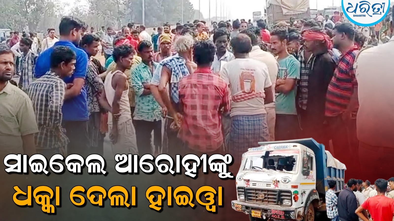 ଧର୍ମଶାଳା,୩୧।୧(ଶିବପ୍ରସାଦ ମହାନ୍ତି): ଯାଜପୁର ଜିଲା ଧର୍ମଶାଳା ଥାନା ଅନ୍ତର୍ଗତ ୫୩ ନମ୍ବର ଜାତୀୟ ରାଜପଥର ନାନପୁର ଛକ ନିକଟରେ ଏକ ମର୍ମନ୍ତୁଦ ସଡ଼କ ଦୁର୍ଘଟଣା ଘଟିଛି। ଏକ ମାଲ୍ ବୋଝେଇ ହାଇୱା ଛକ ନିକଟରେ ସାଇକେଲ ଆରୋହୀଙ୍କୁ ଧକ୍କା ଦେଇଛି। ଘଟଣାସ୍ଥଳରେ ସାଇକେଲ ଆରୋହୀଙ୍କ ମୃତ୍ୟୁ ହୋଇଥିବା ବେଳେ ଉତ୍ତ୍ୟକ୍ତ ଲୋକେ ଗାଡ଼ିକୁ ଭଙ୍ଗା ରୁଜା କରିବା ସହ ରାସ୍ତା ଅବରୋଧ କରିଛନ୍ତି। ଧର୍ମଶାଳା ପୋଲିସ ଥାନାଧିକାରୀ ରମାକାନ୍ତ ନାୟକ ଘଟଣାସ୍ଥଳରେ ପହଞ୍ଚି ବୁଝାସୁଝା କରୁଥିବା ସୂଚନା ମିଳିଛି।