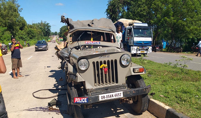 ବାରିପଦା ଅଫିସ,୮।୧୦: ମୟୂରଭଞ୍ଜ ଜିଲା ବାରିପଦା ସହର ଉପକଣ୍ଠ ୧୮ନଂ ଜାତୀୟ ରାଜପଥ ପାଲବଣୀ ମଞ୍ଚାବନ୍ଧା ମଧ୍ୟରେ ଶନିବାର ସକାଳେ ଦୁର୍ଘଟଣା ଘଟିଛି। ଏକ ପୋଲିସଗାଡି ସହ ଏକ ଘୁଷୁରୀ ବୋଝେଇ ଟ୍ରକ ସହ ମୁହାଁମୁହିଁ ଧକ୍କା ହୋଇଛି । ଗାଡିରେ ବସିଥିବା ଦୁଇ କର୍ମଚାରୀ ଓ ପୀଡିତା ସମେତ ୩ ଗୁରୁତର ଆହତ ହୋଇଛନ୍ତି । ସେମାନଙ୍କୁ ବାରିପଦା ପିଆରଏମ ମେଡିକାଲରେ ଭର୍ତ୍ତି କରାଯାଇଛି ।