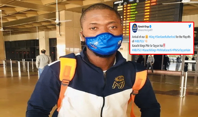 ଆଇପିଏଲ୍ ଶେଷ ହେବା ପରେ ୟୁଏଇରୁ ସିଧା ପାକିସ୍ତାନ ପହଞ୍ଚିଥିଲେ ରଦରଫୋର୍ଡ। ବିମାନବନ୍ଦରରେ ପହଞ୍ଚିବା ବେଳେ ସେ ମୁମ୍ବାଇ ଇଣ୍ଡିଆନ୍ସର ଜର୍ସି ପିନ୍ଧିଥିଲେ। ଏହା ଦେଖି ଲୋକେ ଜର୍ସି ତ ଦେଇ ଦେଇଥାନ୍ତ ବୋଲି କହୁଥିବା ଦେଖାଯାଉଛି।
