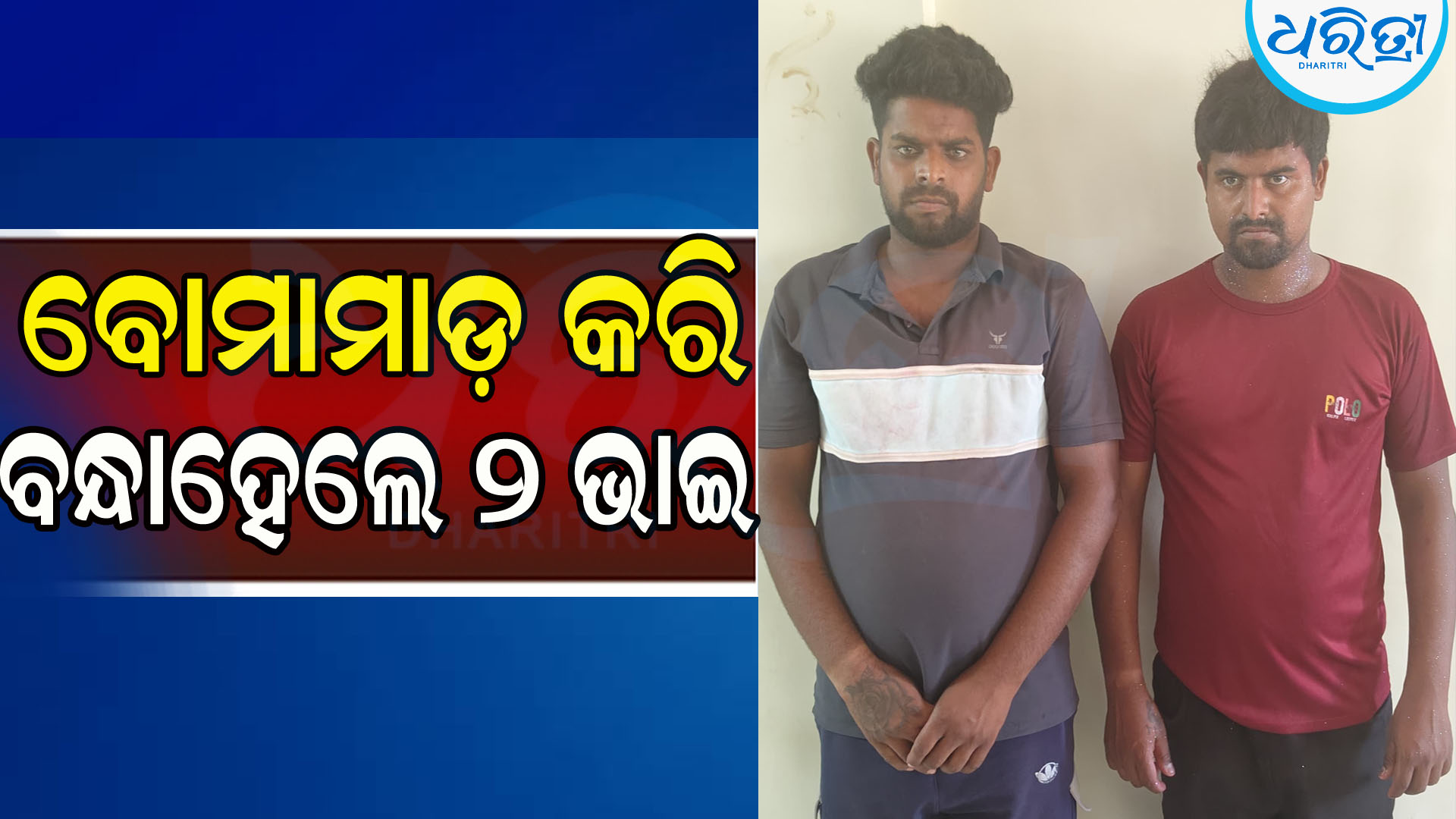 ଗୋପାଳପୁର,୧୬ା୩(ନବୀନ ରାଜ ଆଚାରୀ): ପୂର୍ବ ଶତ୍ରୁତାକୁ କେନ୍ଦ୍ର କରି ବୋମାମାଡ଼ କରିବା ଘଟଣାରେ ଗୋପାଳପୁର ଥାନା ପୋଲିସ ଦୁଇ ଭାଇଙ୍କୁ ପୋଲିସ ଗିରଫ କରି ସୋମବାର କୋର୍ଟ ଚାଲାଣ କରାଯିବ ବୋଲି ପୋଲିସ ସୂଚନା ଦେଇଛି। ଗିରଫ ଅଭିଯୁକ୍ତମାନେ ହେଲେ ବଡ଼ ଗୁମୁଳା ଗ୍ରାମର ଶ୍ରୀକାନ୍ତ ପାତ୍ର, ଭାଇ ସିଦ୍ଧାନ୍ତ ପାତ୍ର ବୋଲି ପୋଲିସ କହିଛି।