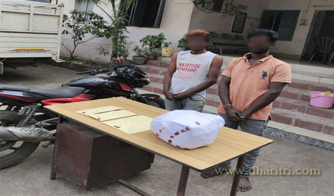ସୁନ୍ଦରଗଡ,୧୨।୧(ଡି.ଏନ୍.ଏ.): ସୁନ୍ଦରଗଡ ଜିଲା ଭଷ୍ମା ଥାନା ପୋଲିସ ୨ଜଣ ଗଞ୍ଜେଇ ଚୋରା ଚାଲାଣକାରୀଙ୍କୁ ଗିରଫ କରିଛି। ସେମାନଙ୍କଠାରୁ ୨କେଜି ଗଞ୍ଜେଇ ଏବଂ ଗୋଟିଏ ବାଇକକୁ ଜବତ କରାଯାଇଛି। ଗିରଫ ଅଭିଯୁକ୍ତମାନେ ଛତିଶଗଡ଼ ରାଜ୍ୟ ଯଶପୁର ଜିଲା ଫରସାବାହାଲ ଥାନା ପଣ୍ଡରିପାନି ଗ୍ରାମର ସମୀର ତିର୍କୀ(୨୨)ଓ ବିଜୟ ନାଏକ(୨୫)। ସେମାନେ ଝାରସୁଗୁଡା ପଟୁ ସୁନ୍ଦରଗଡକୁ ବାଇକ ଯୋଗେ ଆସୁଥିବା ସୂଚନା ପାଇ ଏସ୍ପି ସାଗରିକା ନାଥଙ୍କ ନିର୍ଦ୍ଦେଶ କ୍ରମେ ଭଷ୍ମା ଥାନା ପୋଲିସ ଯାଞ୍ଚ କରି ଏହି ଗଞେଇ ଜବତ କରିଥିଲା। ଗିରଫ ପରେ ଅଭିଯୁକ୍ତଙ୍କୁ ସୁନ୍ଦରଗଡ କୋର୍ଟକୁ ଚାଲାଣ କରାଯାଇଥିବା ସୂଚନା ମିଳିଛି।