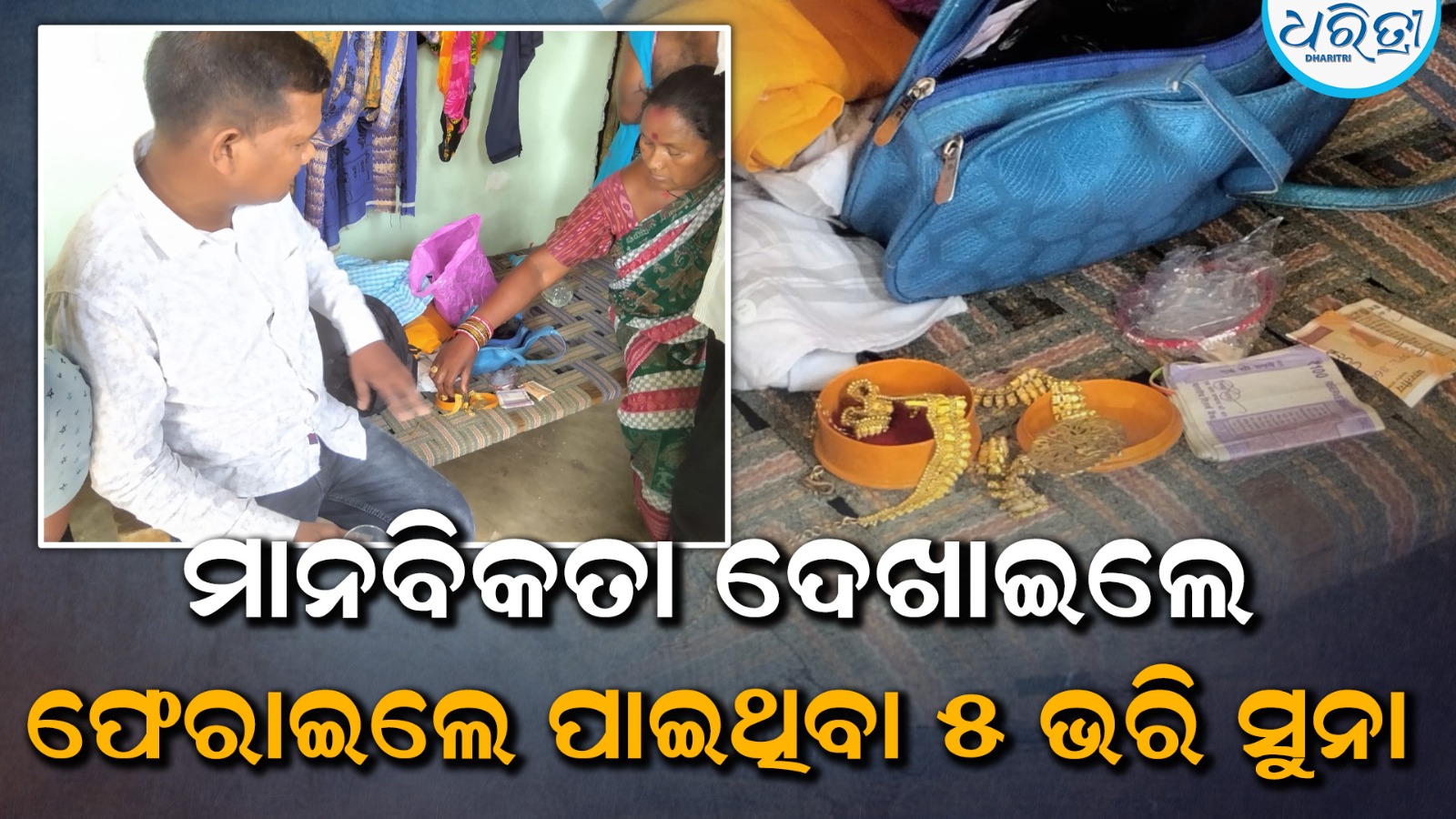 ଅନ୍ୟପକ୍ଷେ, କର୍ଲାମୁଣ୍ଡାର ବଲ୍ଲଭ ନାଏକ, ପୁଲସ୍ତି ବୁଡେକ ଏବଂ ରାମ ଝାଙ୍କର ଉକ୍ତ ବ୍ୟାଗଟିକୁ ପାଇଥିଲେ। ସାମ୍ବାଦିକ ତଥା ସମାଜସେବୀ ସୁଶାନ୍ତ ମଲିକଙ୍କ ଉଦ୍ୟମରେ ଯୋଗାଯୋଗ କରି ଘରକୁ ଡାକି ବ୍ୟାଗ୍ରେ ଥିବା ତାଙ୍କର ସୁନା ଟଙ୍କା ମୋବାଇଲ, ଦୁଇଟି ସୁନା ହାର ଓ ଟଙ୍କା ଫେରସ୍ତ କରିଥିଲେ।