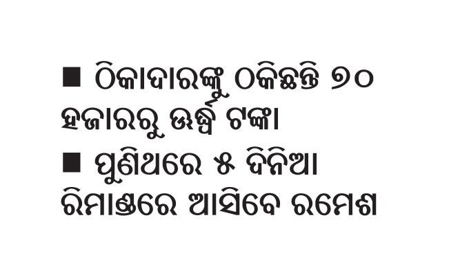 ଅନ୍ୟପକ୍ଷରେ ଅଭିଯୁକ୍ତ ରମେଶ ତୃତୀୟଥର ପାଇଁ ରିମାଣ୍ଡରେ ଆସିବେ। ଗୁଆହାଟୀର ଜଣେ ଡାକ୍ତରାଣୀଙ୍କୁ ମିଥ୍ୟା ପରିଚୟ ଦେଇ ବିବାହ କରିବା ପରେ ରମେଶ ତାଙ୍କଠାରୁ ୨୩ ଲକ୍ଷ ଟଙ୍କା ଠକି ନେଇଥିଲେ। ରମେଶ ଗିରଫ ହେବା ପରେ ଉକ୍ତ ଡାକ୍ତରାଣୀ ସ୍ତ୍ରୀ ଭୁବନେଶ୍ୱର ମହିଳା ଥାନାରେ ପହଞ୍ଚତ୍ ଅଭିଯୋଗ କରିଥିଲେ। ଏହି ମାମଲା (ନଂ.୨୨/୨୦୨୨)ରେ ରମେଶଙ୍କୁ ୭ ଦିନିଆ ରିମାଣ୍ଡରେ ନେବା ପାଇଁ ମହିଳା ଥାନା ପୋଲିସ ଆବେଦନ କରିଥିଲା। କୋର୍ଟ ଆବେଦନକୁ ଗ୍ରହଣ ୫ ଦିନିଆ ରିମାଣ୍ଡ ଅନୁମତି ଦେଇଛନ୍ତି। ଶୁକ୍ରବାରଠାରୁ ରମେଶଙ୍କୁ ରିମାଣ୍ଡରେ ଅଣାଯାଇ ମାରାଥନ ଜେରା କରାଯିବ ବୋଲି ଥାନା ଅଧିକାରରିଣୀ ସନ୍ତୋଷିନୀ ବେହେରା କହିଛନ୍ତି।