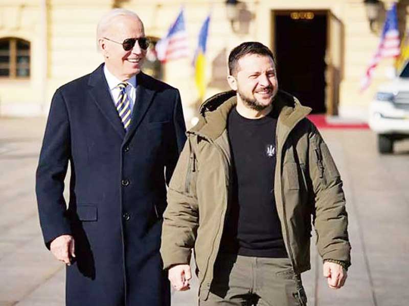 ବାଇଡେନ ୟୁକ୍ରେନ ରାଷ୍ଟ୍ରପତି ଭୋଲୋଡିମିର ଜେଲେନସ୍କିଙ୍କ ସହ ଆଲୋଚନା କରିବା ଏବଂ ଆମେରିକାର ଅସ୍ତ୍ରଶସ୍ତ୍ର ଯୋଗାଣ ବିଷୟରେ ସହମତି ପ୍ରକାଶ କରିବା ପାଇଁ ଫେବୃଆରୀ ୨୦ରେ କିଭକୁ ଏକ ଅଘୋଷିତ ଗସ୍ତ କରିଥିଲେ। ଏହି ଗସ୍ତ ସମୟରେ ସେ ୟୁକ୍ରେନକୁ ଆର୍ଥିକ ସହାୟତା ଘୋଷଣା କରିଥିଲେ। ବାଇଡେନଙ୍କ ଗସ୍ତକୁ ଅତ୍ୟନ୍ତ ଗୁପ୍ତ ରଖାଯାଇଥିଲା।