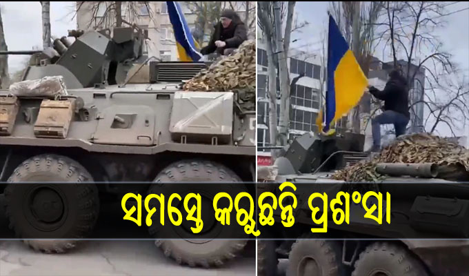 କ୍ୱିଭ୍,୧୦।୩:ରୁଷିଆ ଏବଂ ୟୁକ୍ରେନ ମଧ୍ୟରେ ଯୁଦ୍ଧ ୧୫ ଦିନରେ ପହଞ୍ଚିଛି। ୟୁକ୍ରେନରେ ନିଜର ଆକ୍ରମଣକୁ ବଜାୟ ରଖିଛି ରୁଷିଆ। ଏହି ଭୟଙ୍କର ଯୁଦ୍ଧରେ ୟୁକ୍ରେନ ସେନା ସହ ଏହାର ନାଗରିକମାନେ ମଧ୍ୟ ରୁଷିଆ ବିରୋଧରେ ବାହାରିଛନ୍ତି। ଅନେକ ଲୋକ ନିଜ ଦେଶର ସୁରକ୍ଷା ପାଇଁ ଜୀବନକୁ ବିପଦରେ ପକାଇ ରୁଷିଆ ସୈନିକମାନଙ୍କୁ ଅଟକାଇବାକୁ ଚେଷ୍ଟା କରୁଛନ୍ତି। ନିକଟରେ ଜଣେ ସାଧାରଣ ନାଗରିକ ରୁଷିଆର ଟ୍ୟାଙ୍କ ଉପରକୁ ଚଢି ୟୁକ୍ରେନର ପତାକା ଉତ୍ତୋଳନ କରିବାର ଏକ ଭିଡିଓ ଭାଇରାଲ ହୋଇଛି। ଭିଡିଓରେ ଜଣେ ୟୁକ୍ରେନ ବ୍ୟକ୍ତି ତାଙ୍କ ହାତରେ ଜାତୀୟ ପତାକା ଧରି ରୁଷିଆ ଟ୍ୟାଙ୍କ ଉପରକୁ ଚଢିଥିବାର ନଜର ଆସିଛନ୍ତି। ବ୍ୟକ୍ତି ଜଣକ ଟ୍ୟାଙ୍କ ଉପରକୁ ଚଢିବା ପରେ ୟୁକ୍ରେନର ପତାକା ଉତ୍ତୋଳନ କରିଥିଲେ। ଲୋକମାନେ ତାଙ୍କ ଚାରିପାଖରେ ଏକତ୍ରିତ ହୋଇ ତାଙ୍କୁ ପ୍ରଶଂସା କଲେ। ରୁଷିଆ ଟ୍ୟାଙ୍କ ଚାରିପାଖରେ ଅନେକ ଲୋକ ୟୁକ୍ରେନର ଜାତୀୟ ପତାକା ଧରିଥିବାର ଦେଖାଯାଉଛି। ଲୋକେ ସମ୍ପୃକ୍ତ ବ୍ୟକ୍ତିଙ୍କ ସାହସକୁ ପ୍ରଶଂସା କରିଛନ୍ତି।