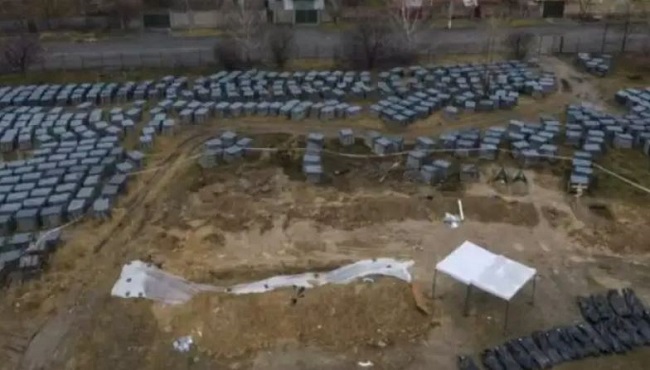 କ୍ୱିଭ୍,୯ ।୪: ୟୁକ୍ରେନର ବୁଚା ସହରରେ ନରସଂହାରର ନୂଆ ନୂଆ ଚିତ୍ର ପ୍ରତିଦିନ ସାମ୍ନାକୁ ଆସୁଛି । ୟୁକ୍ରେନ୍ର ପ୍ରୋସିକ୍ୟୁଟର ଜେନେରାଲଙ୍କ କାର୍ଯ୍ୟାଳୟ ପକ୍ଷରୁ ମିଳିଥିବା ସୂଚନା ଅନୁଯାୟୀ, ବୁଚାରେ ଥିବା ଏକ ଚର୍ଚ୍ଚ ନିକଟରେ ସାମୁହିକ କବର ସ୍ଥାନରୁ ୬୭ ମୃତଦେହ ମିଳିଛି । ଏହି କବରସ୍ଥାନ ସମ୍ପର୍କରେ ସେତେବେଳେ ଜଣାପଡିଥିଲା ଯେତେବେଳେ ରୁଷିଆ ସେନା ସେଠାରୁ ଚାଲିଯିବା ପରେ ଖବରଦାତା ଓ କେତେଜଣ ୟୁକ୍ରେନ୍ ବାସିନ୍ଦା ସେଠାକୁ ଯାଇଥିଲେ । ଯେତେବେଳେ ଏହି ମୃତଦେହ ଗୁଡିକୁ ବାହାରକୁ ବାହାର କରାଯାଇଥିଲା ସେତେବେଳେ ମୃତଦେହ ଗୁଡିକ କଳା ପଲିଥିନରେ ଗୁଡାଇ ମାଟି ଓ ପତ୍ରରେ ଘୋଡାଇ ଦିଆଯାଇଥିବା ଦେଖିବାକୁ ମିଳିଥିଲା । ଏମାନଙ୍କ ମଧ୍ୟରୁ ଅଧିକାଂଶ ମୃତଦେହରେ ଗୁଳି ବାଜିଥିବାର ଚିହ୍ନ ରହିଥିଲା ।