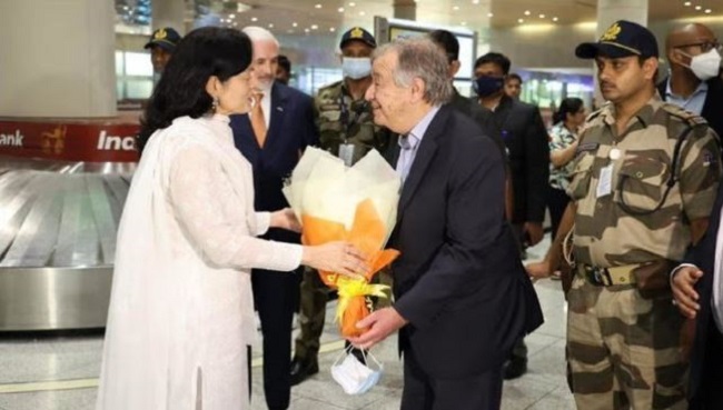 ନୂଆଦିଲ୍ଲୀ,୧୯ ।୧୦: ସଂଯୁକ୍ତ ରାଷ୍ଟ୍ର ମହାସଚିବ ଆଣ୍ଟୋନିଓ ଗୁଟେରସ ମଙ୍ଗଳବାର ବିଳମ୍ବିତ ରାତିରେ ଭାରତ ପହଞ୍ଚିଛନ୍ତି । ରାଷ୍ଟ୍ରଦୂତ ରୁଚିରା କମ୍ବୋଜ ତାଙ୍କୁ ସ୍ୱାଗତ କରିଛନ୍ତି । ଏହା ଗୁଟେରସଙ୍କ ଦ୍ୱିତୀୟ କାର୍ଯ୍ୟକାଳର ପ୍ରଥମ ଭାରତ ଯାତ୍ରା । ବୈଦେଶିକ ମନ୍ତ୍ରଣାଳୟ ତାଙ୍କ ଯାତ୍ରା ସମ୍ପର୍କରେ ସୂଚନା ଦେଇ କହିଛି ସଂଯୁକ୍ତ ରାଷ୍ଟ୍ର ମୁଖ୍ୟ ଗୁଟେରସ ୧୮-୨୦ ଅକ୍ଟୋବର ପର୍ଯ୍ୟନ୍ତ ଭାରତ ଯାତ୍ରାରେ ରହିବେ । ଏହି ସମୟରେ ସେ ପ୍ରଧାନମନ୍ତ୍ରୀ ନରେନ୍ଦ୍ର ମୋଦି ଓ ବୈଦେଶିକ ମନ୍ତ୍ରୀ ଏସ ଜୟଶଙ୍କରଙ୍କ ସହ ସାକ୍ଷାତ୍ କରିବେ ।