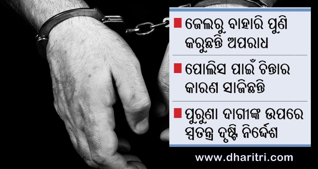 ଜେଲରୁ ଫେରୁଥିବା ଅଭ୍ୟାସଗତ ଅପରାଧୀମାନେ ପୁଣି ଆପରାଧିକ କାର୍ଯ୍ୟରେ ସାମିଲ ରହୁଛନ୍ତି। ଏମାନଙ୍କ ଉପରେ ସ୍ବତନ୍ତ୍ର ଦୃଷ୍ଟି ରଖିବାକୁ ସମସ୍ତ ଥାନା ଅଧିକାରୀଙ୍କୁ ନିର୍ଦ୍ଦେଶ ଦିଆଯାଇଛି। ଏହାଛଡ଼ା ପୋଲିସର ଗୋଇନ୍ଦା ବିଭାଗକୁ ମଧ୍ୟ ସଜାଗ ରଖାଯାଇଛି। ଜନସାଧାରଣଙ୍କୁ ସୂଚନା ଦେବାକୁ କୁହାଯାଇଛି।