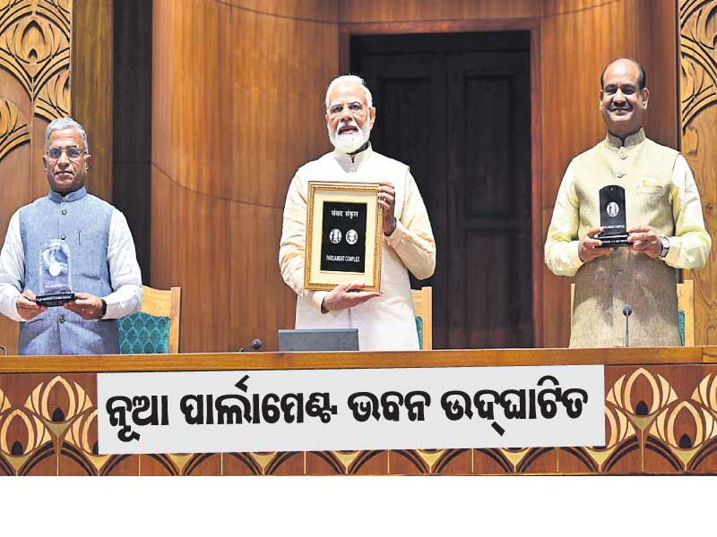 ନୂଆଦିଲ୍ଲୀ, ୨୯ା୫(ପି.ଟି.): ପ୍ରଧାନମନ୍ତ୍ରୀ ନରେନ୍ଦ୍ର ମୋଦି ରବିବାର ପୂର୍ବାହ୍ନରେ ନୂଆ ପାର୍ଲାମେଣ୍ଟ ଭବନର ଉଦ୍‌ଘାଟନ କରିଛନ୍ତି। ଦେଶର ବିକାଶ ଯାତ୍ରାରେ ଏହା ଏକ ଅବିସ୍ମରଣୀୟ ମୁହୂର୍ତ୍ତ ବୋଲି ପ୍ରଧାନମନ୍ତ୍ରୀ କହିବା ସହିତ ଏକ ଆତ୍ମନିର୍ଭର ଏବଂ ବିକଶିତ ଭାରତର ସୂର୍ଯ୍ୟୋଦୟର ସଙ୍କେତ, ଯାହା ଅନ୍ୟ ଦେଶଗୁଡ଼ିକର ପ୍ରଗତିକୁ ଅନୁପ୍ରାଣିତ କରିବ ବୋଲି ଉଲ୍ଲେଖ କରିଛନ୍ତି। ମୟୂର ଆକୃତିର ସୁସଜ୍ଜିତ ବିଶାଳ ଲୋକ ସଭା ପ୍ରକୋଷ୍ଠରୁ ଉଦ୍‌ବୋଧନ ଦେଇ ପ୍ରଧାନମନ୍ତ୍ରୀ କହିଥିଲେ, ନୂତନ ଲକ୍ଷ୍ୟ ହାସଲ ଦିଗରେ କାର୍ଯ୍ୟ କରିବା ଲାଗି ନୂଆ ପାର୍ଲାମେଣ୍ଟ ଭବନ ନୂତନ ଭାରତର ଆଶା ଆକାଂକ୍ଷା ଏବଂ ସଂକଳ୍ପକୁ ପ୍ରତିଫଳିତ କରୁଛି। ଏଠାରେ ନିଆଯିବାକୁ ଥିବା ପ୍ରତ୍ୟେକ ନିଷ୍ପତ୍ତି ଭାରତର ଗୌରବମୟ ଭବିଷ୍ୟତର ମୂଳଦୁଆ ପକାଇବ, ଯାହା ଗରିବ, ଦଳିତ, ପଛୁଆ, ଆଦିବାସୀ, ଦିବ୍ୟାଙ୍ଗ ଓ ଅନ୍ୟାନ୍ୟ ଅବହେଳିତ ବର୍ଗଙ୍କ ସଶକ୍ତୀକରଣ ଦିଗରେ କାର୍ଯ୍ୟ କରିବ। ଏହି ବିଲ୍ଡିଂର ପ୍ରତି ଇଟା ଓ କାନ୍ଥ ଗରିବମାନଙ୍କ କଲ୍ୟାଣ ପାଇଁ ଉତ୍ସର୍ଗୀକୃତ ହେବା ଆବଶ୍ୟକ ବୋଲି ପ୍ରଧାନମନ୍ତ୍ରୀ କହିଥିଲେ।