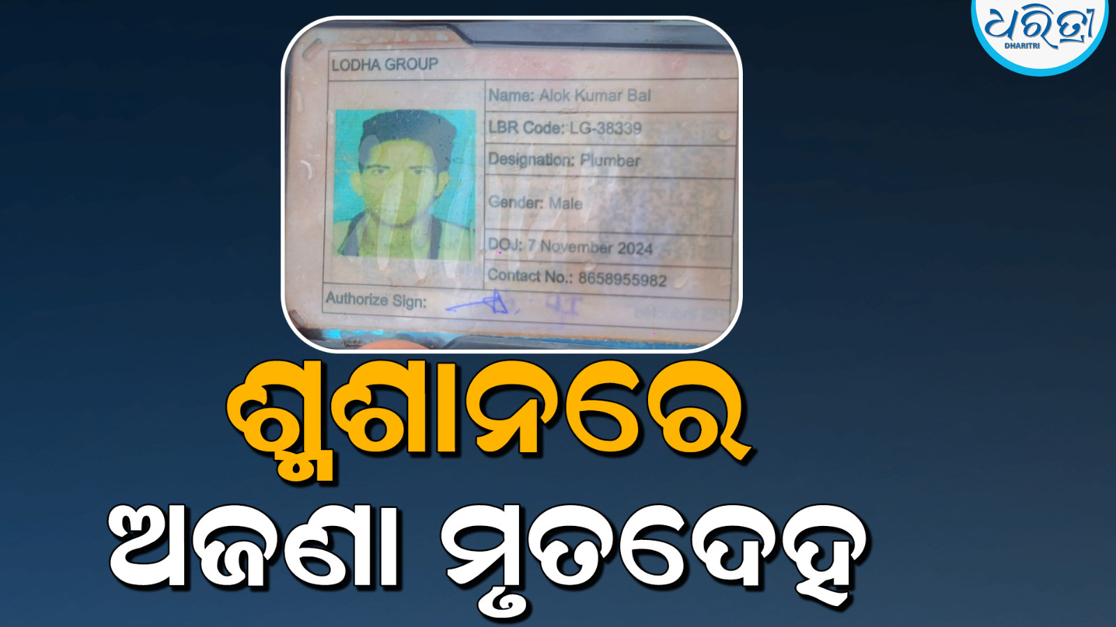 ସୂଚନା ମୁତାବକ, କଳା ରଙ୍ଗର ଶର୍ଟ ଓ ଫୁଲ ପ୍ୟାଣ୍ଟ ପିନ୍ଧିଥିବା ଜଣେ ଯୁବକର ମୃତଦେହ ଶ୍ମଶାନରେ ପଡ଼ିଥିବା ସ୍ଥାନୀୟ ଲୋକେ ସକାଳେ ଦେଖିବା ପରେ ପୋଲିସକୁ ଖବର ଦେଇଥିଲେ l ମୃତଦେହ ନିକରୁ ମିଳିଥିବା ମୋବାଇଲ କଭରରେ ଲୋଧା କମ୍ପାନୀର ଏକ ପରିଚୟ ପତ୍ର ମିଳିଛି l ସେହି କମ୍ପାନୀରେ ଜଣେ ମିସ୍ତ୍ରୀ ଭାବେ କରୁଥିବା ଏବଂ ତାହାର ନାମ ଆଲୋକ କୁମାର ବଳ ଲେଖା ଅଛି l ମୃତଦେହର ମୁହଁ ଓ ପେଟରେ ଚମଡା ବାହାରି ଯାଇଥିବାରୁ ଏସିଡ ମାଡ଼ ହୋଇଥିବା ସନ୍ଦେହ କରାଯାଉଛି l ରବିବାର ରାତିରେ କେହି ହତ୍ୟା କରି ଏଠାରେ ପକାଇଥିବା ସ୍ଥାନୀୟ ଅଞ୍ଚଳରେ ଚର୍ଚ୍ଚା ହେଉଛି l ପୋଲିସ ମୃତଦେହକୁ ବ୍ୟବଚ୍ଛେଦ ପାଇଁ ପଠାଇଛି l