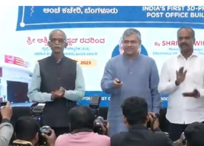 ବେଙ୍ଗାଲୁରୁ,୧୮।୮: କେନ୍ଦ୍ର ରେଲ ମନ୍ତ୍ରୀ ଅଶ୍ୱିନୀ ବୈଷ୍ଣବ ଶୁକ୍ରବାର ୩ଡି ପ୍ରିଣ୍ଟେଡ ଟେକନିକରେ ନିର୍ମିତ ଦେଶର ପ୍ରଥମ ଡାକଘରର ଉଦଘାଟନ କରିଛନ୍ତି। ୧୧୦୦ ବର୍ଗଫୁଟର ଡାକଘରର ଉଦଘାଟନ ବେଙ୍ଗାଲୁରୁର ଉଲ୍ସୁର ବଜାର ନିକଟ କେମ୍ବ୍ରିଜ ଲେଆଉଟରେ ଆୟୋଜିତ କରାଯାଇଥିଲା।