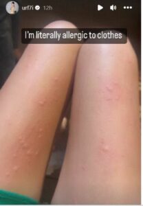 ନିଜେ ଉର୍ଫି ଏକଥା କହିଛନ୍ତି । ସେ ତାଙ୍କ ଇନଷ୍ଟା ଷ୍ଟୋରୀରେ ଏକ ଭିଡିଓ ଶେୟାର କରିଛନ୍ତି । ଏଥିରେ ସେ ତାଙ୍କ ବଡିରେ ହୋଇଥିବା ରାଶେସକୁ ଦେଖାଇଛନ୍ତି । ଯାହାକୁ ନେଇ ସେ ଖୁବ୍ ଚିନ୍ତିତ ବୋଲି କହିଛନ୍ତି । ସେ କହିଛନ୍ତି ଯଦି କେବେ ସେ ପୁରା ଡ୍ରେସ ପିନ୍ଧନ୍ତି ତେବେ ତାଙ୍କ ବଡିର ଅବସ୍ଥା ଏମିତି ହୋଇଥାଏ । କପଡା ଯୋଗୁ ତାଙ୍କର ଆଲର୍ଜି ଥିବାରୁ ସେ ଏମିତି ପୋଷାକ ପିନ୍ଧୁଛନ୍ତି । ସେ କହିଛନ୍ତି ମୋ କଣ୍ଡିସନ ସିରିୟସ ।