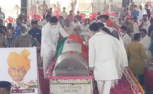 ଆଲିଗଡ଼,୨୩ ।୮: ଉତ୍ତର ପ୍ରଦେଶର ପୂର୍ବତନ ମୁଖ୍ୟମନ୍ତ୍ରୀ ତଥା ରାଜସ୍ଥାନର ପୂର୍ବତନ ରାଜ୍ୟପାଳ କଲ୍ୟାଣ ସିଂଙ୍କର ବୁଲନ୍ଦସହରର ନରୌରା ଘାଟରେ ଅନ୍ତିମ ସଂସ୍କାର କରାଯାଇଛି । ପୁଅ ରାଜବୀର ସିଂ କଲ୍ୟାଣ ସିଂଙ୍କୁ ମୁଖାଗ୍ନି ଦେଇଛନ୍ତି । ତାଙ୍କର ଅନ୍ତିମ ସଂସ୍କାରରେ ଜନସମୁଦ୍ର ଦେଖିବାକୁ ମିଳିଥିଲା । କେନ୍ଦ୍ରମନ୍ତ୍ରୀ ରାଜନାଥ ସିଂ, ସ୍ମୃତି ଇରାନି, ମୁଖ୍ୟମନ୍ତ୍ରୀ ଯୋଗୀ ଆଦତ୍ୟନାଥ, ଉପମୁଖ୍ୟମନ୍ତ୍ରୀ କେଶବ ପ୍ରସାଦ ମୌର୍ଯ୍ୟ ପ୍ରମୁଖ ଉପସ୍ଥିତ ରହି ଆହୁତି ପ୍ରଦାନ କରିଥିଲେ । ସୂଚନାଯୋଗ୍ୟ, ଶରୀରର ଅନେକ ଅଙ୍ଗ କାମ କରିବା ବନ୍ଦ କରିଦେବା ଫଳରେ କିଛି ଦିନ ହସ୍ପିଟାଲରେ ରହି ଚିକିତ୍ସିତ ହେବା ପରେ ରବିବାର କଲ୍ୟାଣ ସିଂ ଶେଷ ନିଶ୍ୱାସ ତ୍ୟାଗ କରିଥିଲେ । ଲକ୍ଷ୍ନୌରେ ସେ ଶେଷ ନିଶ୍ୱାସ ତ୍ୟାଗ କରିଥିଲେ ବି ତାଙ୍କ ପୈତୃକ ସହର ଆଲିଗଡ଼ରେ ଶେଷକୃତ୍ୟ ସମ୍ପନ୍ନ କରାଯାଇଛି ।