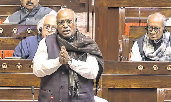 ହଟ୍ଟଗୋଳ ଲାଗି ରହିଥିବାବେଳେ ବିରୋଧୀ ଦଳ ନେତା ଖାର୍ଗେ ଏଥିରେ ହସ୍ତକ୍ଷେପ କରିଥିଲେ। ତେବେ ତାଙ୍କୁ ପୂର୍ବରୁ କହିବା ପାଇଁ ସୁଯୋଗ ଦିଆଯାଇଥିବାରୁ ଏବେ ଦିଗ୍ବିଜୟଙ୍କ ପାଳି ବୋଲି ଗୃହରେ ଅଧ୍ୟକ୍ଷତା କରୁଥିବା ହରିବଂଶ କହିବା ସତ୍ତ୍ୱେ ବିରୋଧୀ ଦଳ ସରକାରଙ୍କୁ ଘେରିବା ପାଇଁ ପ୍ରସ୍ତୁତ ଥିବା କଂଗ୍ରେସ ଅଧ୍ୟକ୍ଷ ହିନ୍ଦୀରେ କହିବା ସହ ମର୍ଯ୍ୟାଦାହାନି ହେଲାଭଳି ଶବ୍ଦ କହିଥିଲେ। ତାଙ୍କ ମନ୍ତବ୍ୟକୁ ସରକାରୀ ଦଳର ସଦସ୍ୟମାନେ ଅଣସଂସଦୀୟ କହିବା ସହ ହୋହଲ୍ଲା କରିଥିଲେ। ଗୃହର ନେତା ଜେ.ପି. ନଡ୍ଡା ହସ୍ତକ୍ଷେପ କରି କହିଥିଲେ, ଗୃହର ଅଧ୍ୟକ୍ଷଙ୍କୁ ଆକ୍ଷେପ କରି ବିରୋଧୀ ଦଳ ନେତାଙ୍କ ମନ୍ତବ୍ୟ ନିନ୍ଦନୀୟ। ସେ କ୍ଷମା ମାଗନ୍ତୁ ଓ ନିଜ ମନ୍ତବ୍ୟକୁ ଫେରାଇ ନିଅନ୍ତୁ ବୋଲି ନଡ୍ଡା ଦାବି କରିଥିଲେ। ଖାର୍ଗେ ତୁରନ୍ତ କ୍ଷମା ମାଗିବା ସହ ସେ ଗୃହର ଅଧ୍ୟକ୍ଷଙ୍କ ଉଦ୍ଦେଶ୍ୟରେ ନୁହେଁ ବରଂ ସରକାରଙ୍କ ନୀତିକୁ ନେଇ ଏଭଳି ମନ୍ତବ୍ୟ ଦେଇଥିବା କହିଥିଲେ। ସରକାରୀ ଦଳକୁ ଲକ୍ଷ୍ୟ କରି ଖାର୍ଗେ କହିଥିଲେ, ଦେଶର ଗୋଟିଏ ଭାଗ ଏବଂ ଏହାର ଲୋକମାନଙ୍କ ଆତ୍ମସମ୍ମାନକୁ ଆପଣମାନେ ଆଘାତ ଦେଇଛନ୍ତି। ସେମାନଙ୍କୁ ଅସଭ୍ୟ ଓ ଅଭଦ୍ର କହିଛନ୍ତି। ସେହି ମନ୍ତ୍ରୀ ଇସ୍ତଫା ଦେବା ଉଚିତ। ସେମାନେ ଦେଶକୁ ଭାଗ ଭାଗ କରିବା କଥା କହୁଛନ୍ତି ବୋଲି ଖାର୍ଗେ ସ୍ପଷ୍ଟୀକରଣରେ କହିଥିଲେ। ଗୃହର ଅଧ୍ୟକ୍ଷଙ୍କୁ ଖାର୍ଗେ କ୍ଷମା ମାଗିଥିବାରୁ ନଡ୍ଡା ଏହାର ପ୍ରଶଂସା କରିଥିଲେ। ତେବେ ମନ୍ତବ୍ୟ ସରକାରଙ୍କ ପ୍ରତି ହୋଇଥିଲେ ତାହା ମଧ୍ୟ ନିନ୍ଦନୀୟ ବୋଲି କହିଥିଲେ।
