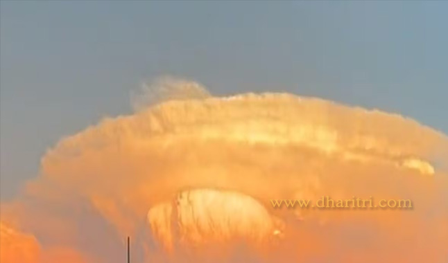 ଓ୍ବାଶିଂଟନ୍,୨୭।୯: ଆମେରିକାର ଓକ୍ଲାହୋମା ରାଜ୍ୟରେ ଏକ ଭୟଙ୍କର ଦୃଶ୍ୟ ଦେଖିବାକୁ ମିଳିଛି। ହଠାତ୍ ଆକାଶର ରଙ୍ଗ ବଦଳି ଯାଇଥିବା ସ୍ଥାନୀୟ ବାସିନ୍ଦା ଦେଖିବାକୁ ପାଇଥିଲେ। ଆକାଶରେ ଧୂଳି ଓ ଧୂଆଁ ଉପରକୁ ଉଠି ଏକ ଗୋଲାକାର ସ୍ଥାନରେ ଘୁରିବାକୁ ଲାଗିଥିଲା। ଏହା ଦେଖି ଲୋକେ ଭୟରେ ଥରିବାକୁ ଲାଗିଥିଲେ। କିନ୍ତୁ ପରେ ଜାଣିବାକୁ ମିଳିଲା ଯେ ବାତ୍ୟା ଆଗମନରେ ଆକାଶର ରଙ୍ଗ ପରମାଣୁ ପରୀକ୍ଷଣ ପରି ପ୍ରତୀତ ହେଉଛି।