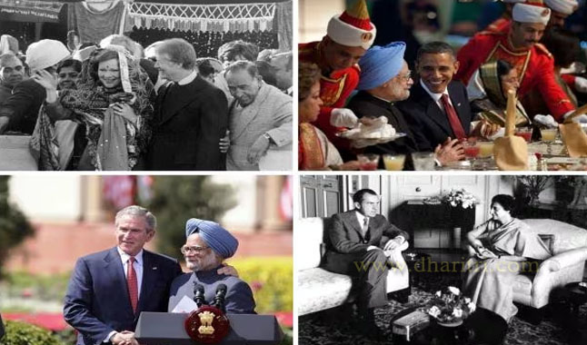 ତୃତୀୟ ରାଷ୍ଟ୍ରପତି ଭାବେ ୧୯୭୮ ଜାନୁୟାରୀରେ ଜିମି କାର୍ଟର ତିନି ଦିନିଆ ଗସ୍ତରେ ଭାରତ ଆସିଥିଲେ। ସେତେବେଳେ ଭାରତର ପ୍ରଧାନମନ୍ତ୍ରୀ ଥିଲେ ମୋରାରଜୀ ଦେଶାଇ। ୨୦୦୦ମସିହା ମାର୍ଚ୍ଚ ୨୧ରେ ଚତୁର୍ଥ ରାଷ୍ଟ୍ରପତି ଭାବେ ବିଲ କ୍ଲିଣ୍ଟନ ଭାରତ ଆସିଥିଲେ। ସେ ଭାରତକୁ ପାଞ୍ଚଦିନିଆ ଗସ୍ତରେ ଆସିଥିଲେ। ସେତେବେଳେ ଭାରତର ପ୍ରଧାନମନ୍ତ୍ରୀ ଥିଲେ ଅଟଳ ବିାହରୀ ବାଜପେୟୀ। ୨୦୦୬ ମାର୍ଚ୍ଚ ୧ରେ ଜର୍ଜ ଡବ୍ଲୁ ବୁଶ ୩ଦିନିଆ ଗସ୍ତରେ ଭାରତ ଆସିଥିଲେ। ସେତେବେଳେ ଭାରତର ପ୍ରଧାନମନ୍ତ୍ରୀ ଥିଲେ ମନମୋହନ ସିଂ। ସେହିପରି ମନମୋହନଙ୍କ କାର୍ଯ୍ୟକାଳ ସମୟରେ ବାରାକ ଓବାମା ଭାରତ ଆସିଥିଲେ।