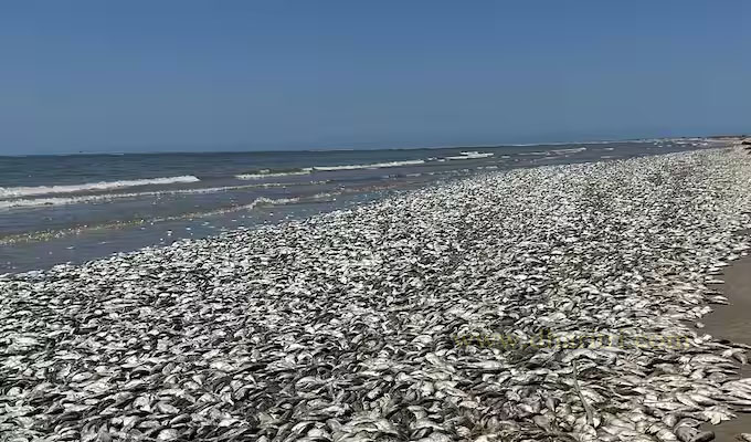 ଶୁକ୍ରବାରଠାରୁ କ୍ୱିଣ୍ଟାନା ସମୁଦ୍ର କଳୂରେରେ ଏପରି ମାଛ ମଡକ ଦେଖିବାକୁ ମିଳିଛି। ପ୍ରଶାସନ ଏହାକୁ ହଟାଇ ସମୁଦ୍ରକୂଳ ସଫା କରୁଛନ୍ତି।