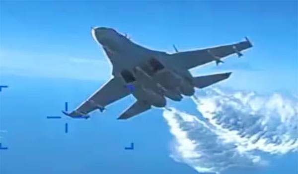 Official footage released by the U.S. Air Force of the collision between a Russian Su-27 and US MQ-9 over the Black Sea. pic.twitter.com/kZaYUyXzVm