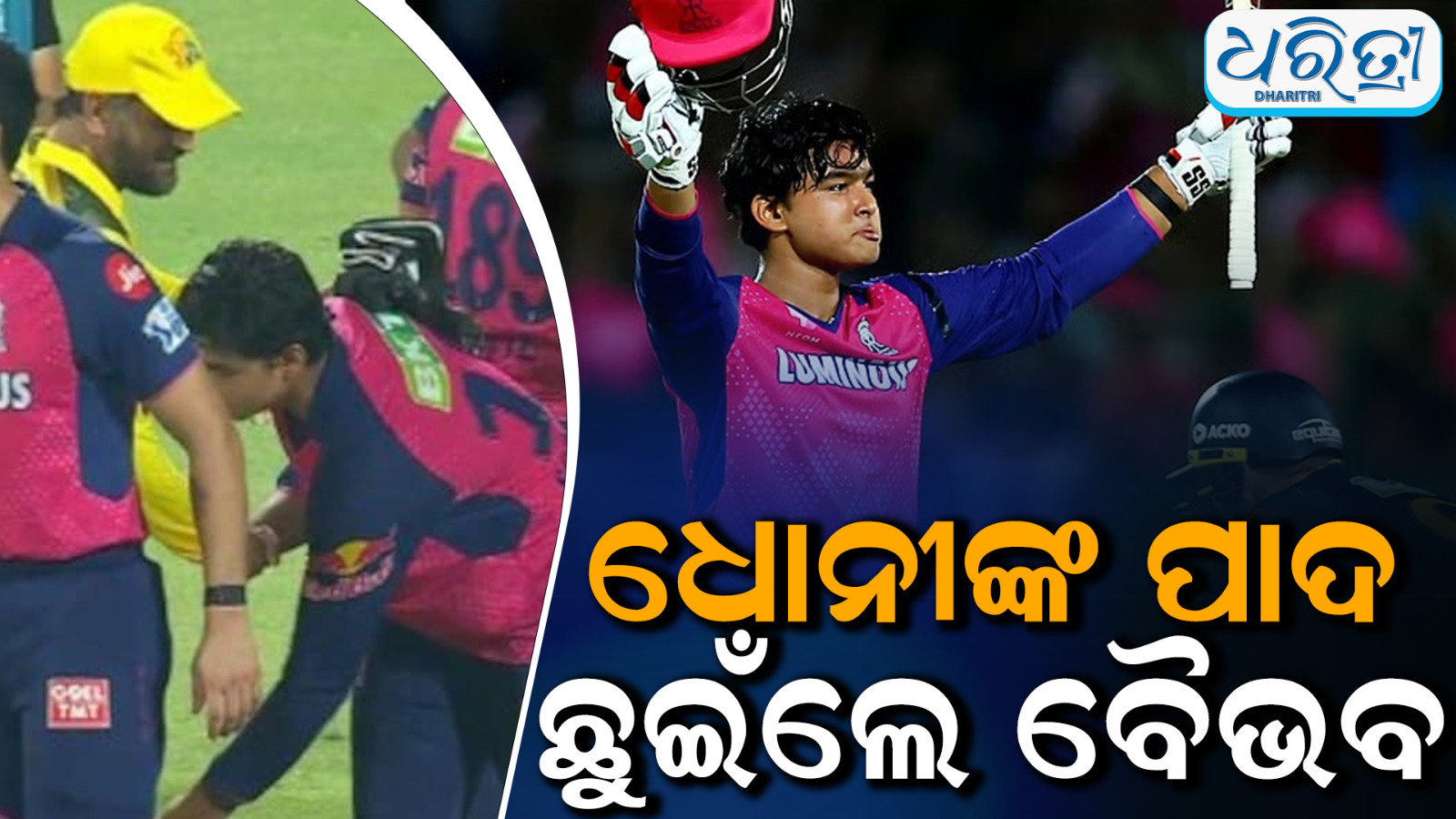ଜୟପୁର,୨୧।୫: ରାଜସ୍ଥାନ ରୟାଲ୍ସର ଯୁବ ଓପନର ବୈଭବ ସୂର୍ଯ୍ୟବଂଶୀ ମହେନ୍ଦ୍ର ସିଂହ ଧୋନୀଙ୍କ ପାଦ ଛୁଇଁ ଆଶୀର୍ବାଦ ନେଇ IPL 2025 ସିଜିନ ଶେଷ କରିଥିଲେ। ନୂଆଦିଲ୍ଲୀର ଅରୁଣ ଜେଟଲି ଷ୍ଟାଡିୟମରେ ରାଜସ୍ଥାନ ଏବଂ ଚେନ୍ନାଇ ସୁପର କିଙ୍ଗ୍ସ (ସିଏସକେ) ମୁହାଁମୁହିଁ ହୋଇଥିଲେ। ଏହା ଚଳିତ ସିଜିନରେ ରାଜସ୍ଥାନର ଶେଷ ମ୍ୟାଚ ଥିଲା ଏବଂ ୧୪ ବର୍ଷୀୟ ବୈଭବ ଏହି ମ୍ୟାଚ୍ରେ ମଧ୍ୟ ନିଜର ଛାପ ଛାଡ଼ିବାରେ ସଫଳ ହୋଇଥିଲେ।