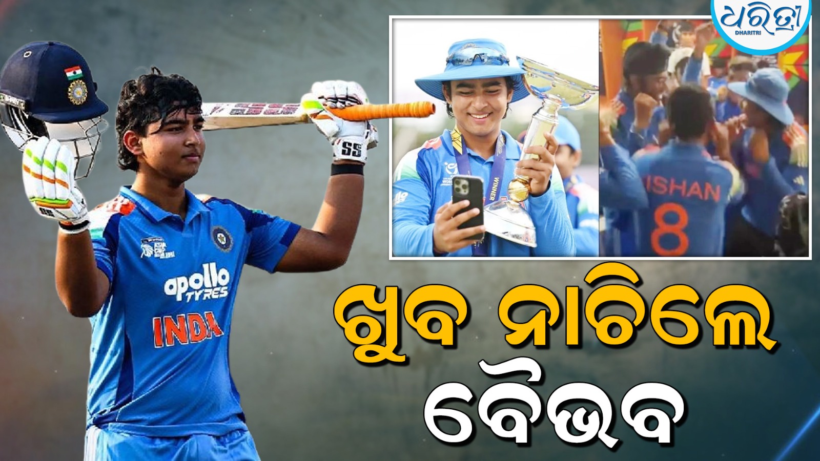 ଭାରତୀୟ ଦଳ ଡ୍ରେସିଂ ରୁମରେ ନୃତ୍ୟ ସହିତ ସେମାନଙ୍କର ବିଜୟ ପାଳନ କରିଥିଲା। ଏହି ସମୟରେ, ବୈଭବ ସୂର୍ଯ୍ୟବଂଶୀ ତାଙ୍କ ଉପସ୍ଥିତିରେ ସଭିଙ୍କ ଦୃଷ୍ଟି ଆକର୍ଷଣ କରିଥିଲେ। ୧୪ ବର୍ଷୀୟ ବୈଭବ ତାଙ୍କ ନୃତ୍ୟ କରୁଥିବା ସାଥୀଙ୍କ ମଧ୍ୟରେ ଡେଇଁ ପଡ଼ି ଆନନ୍ଦରେ ଉତ୍ସବ ପାଳନ କରିଥିଲେ।